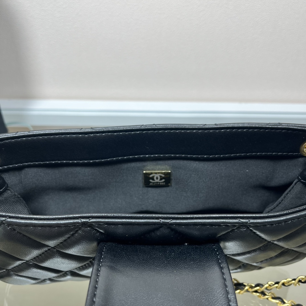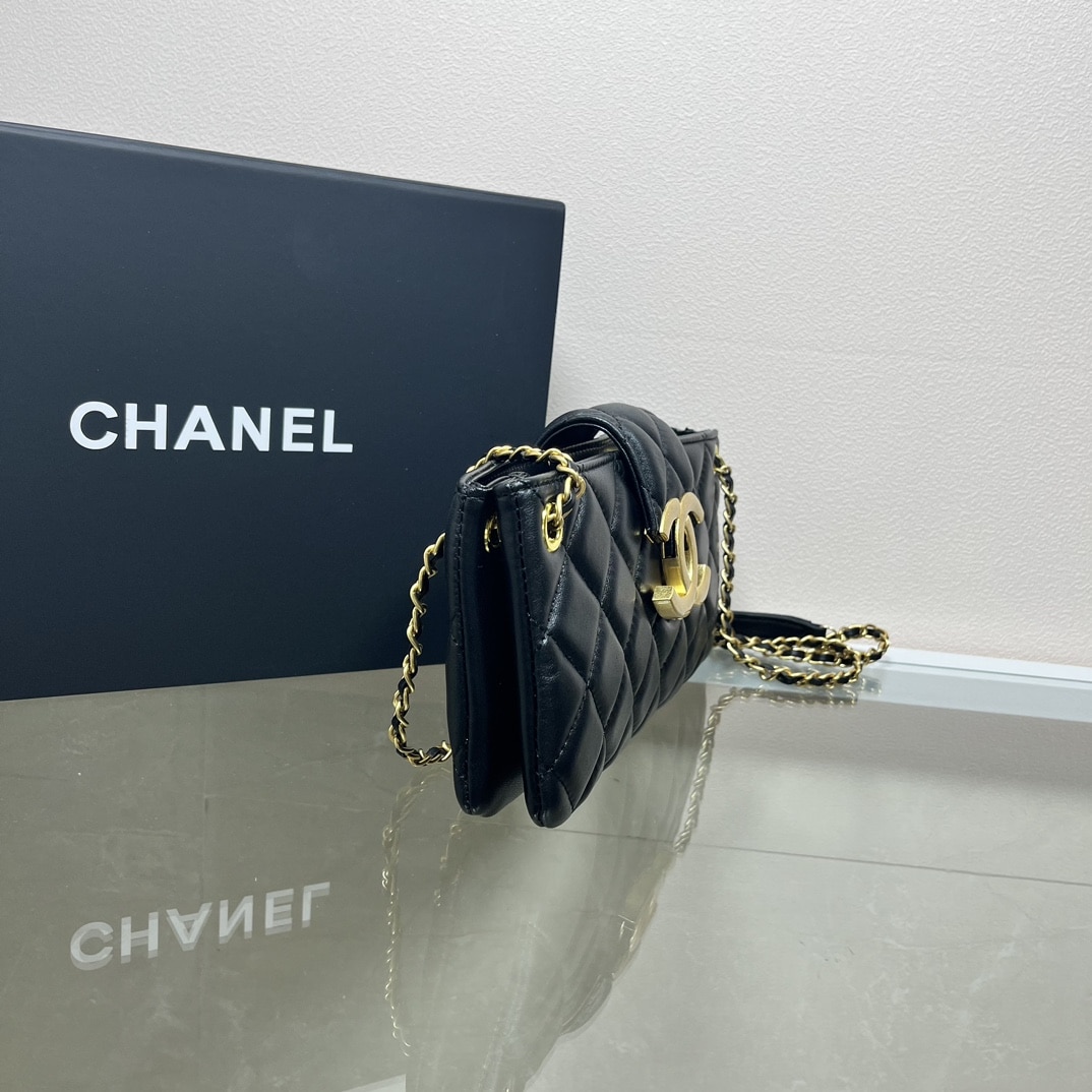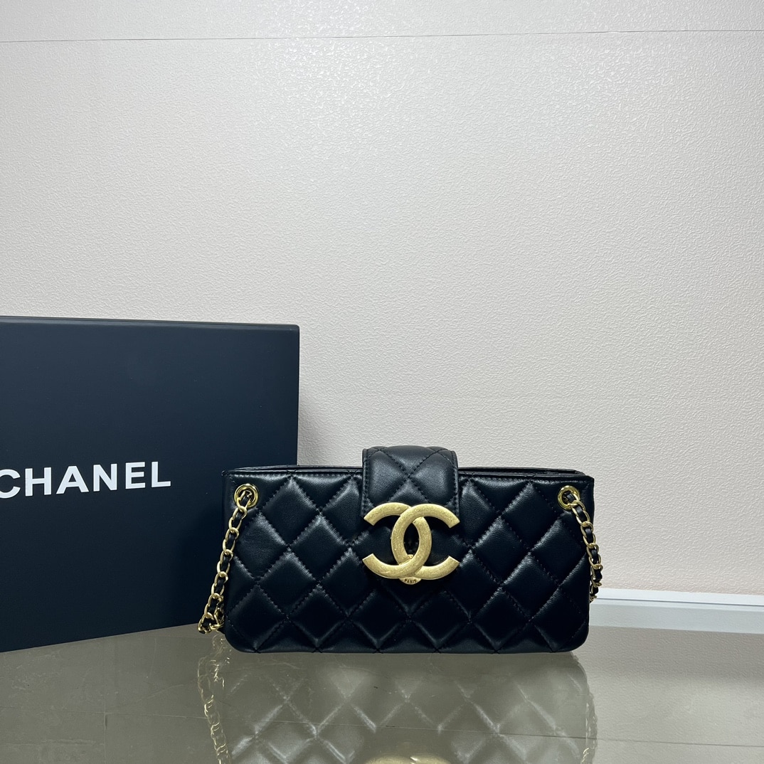 Chanel Long Flap Cc Logo Bag / Black 21cm