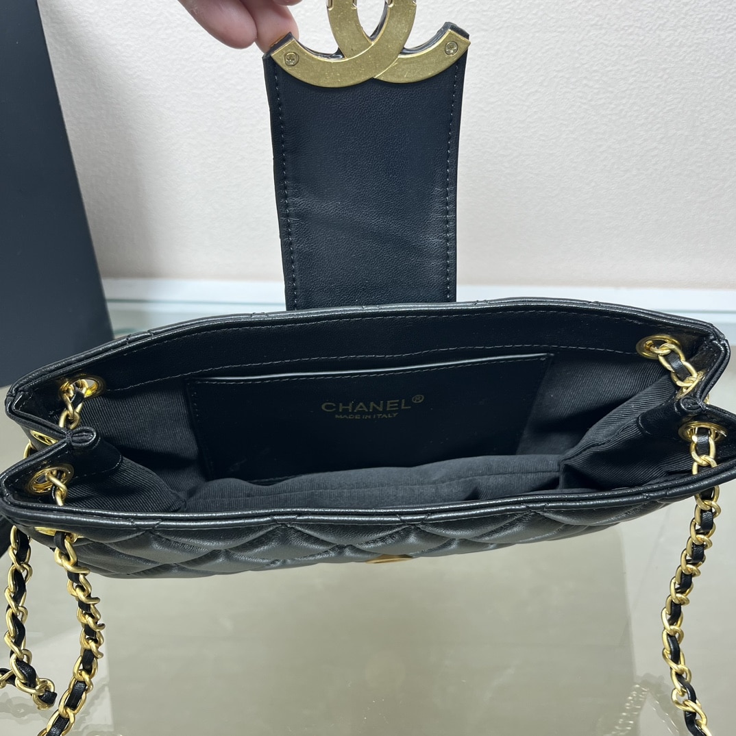CHANEL LONG FLAP CC LOGO BAG BLACK 24CM