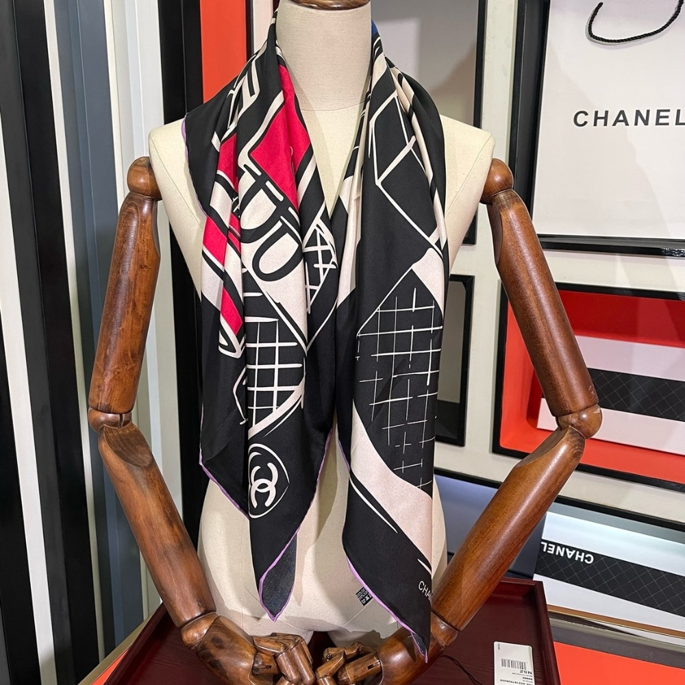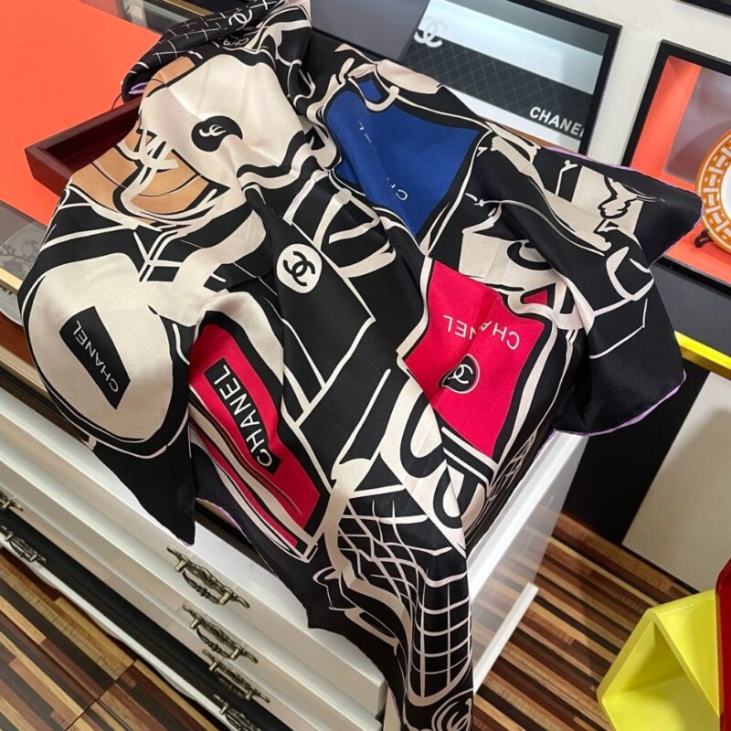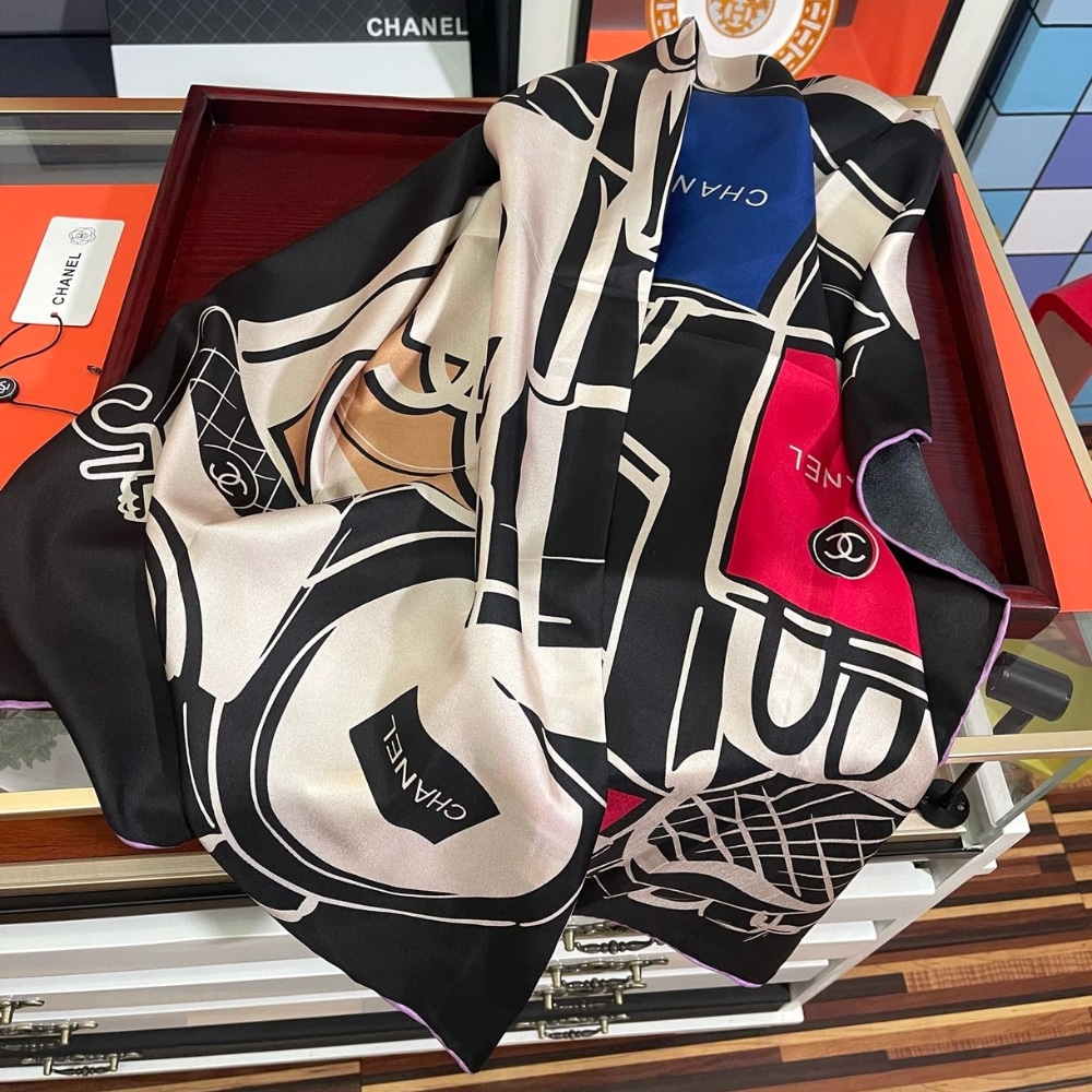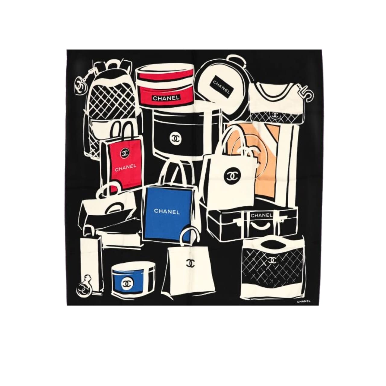 Chanel Luggage Print Silk Scarf Black 90cm