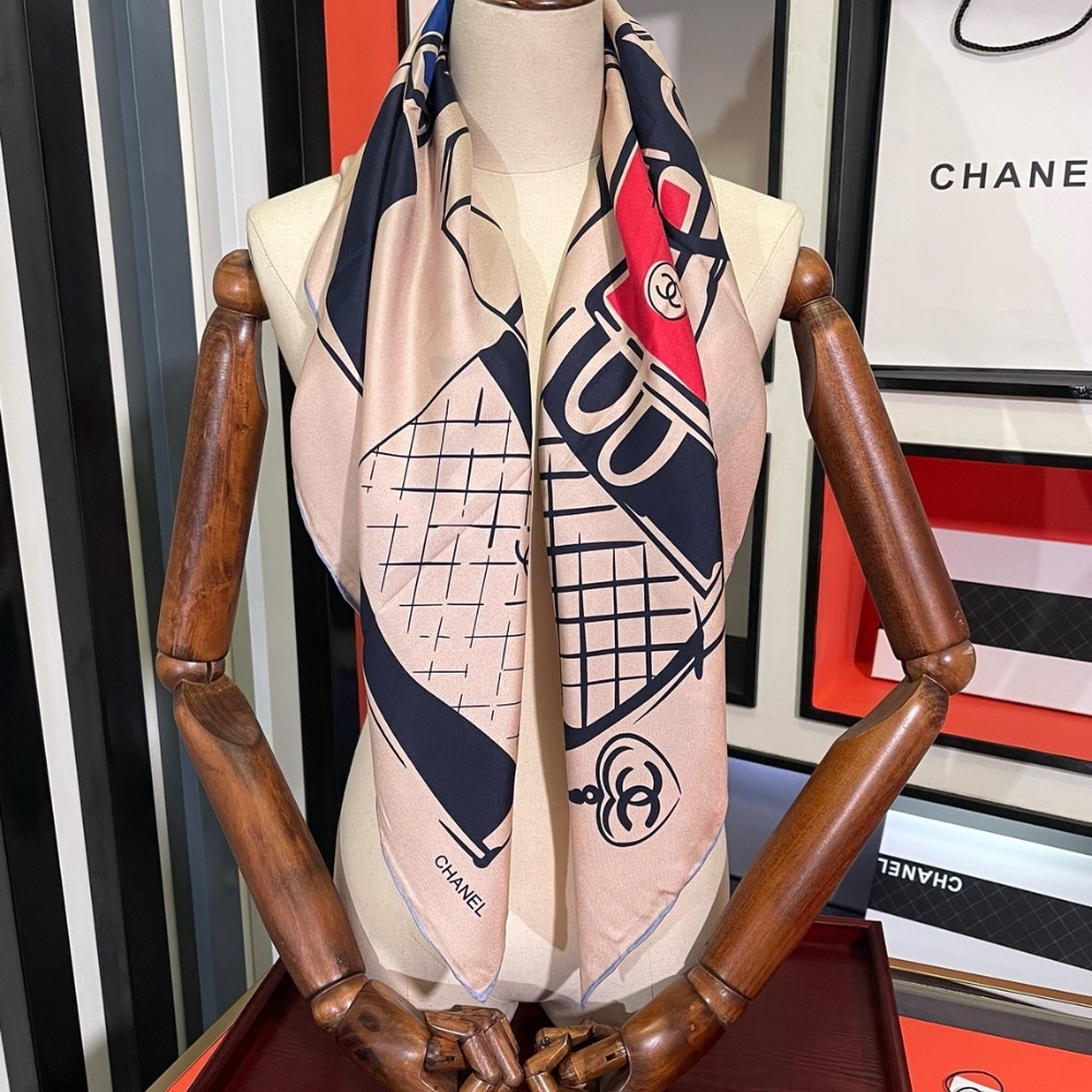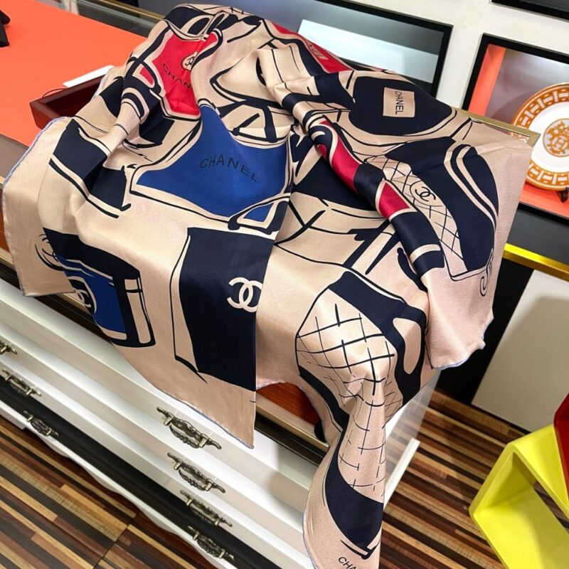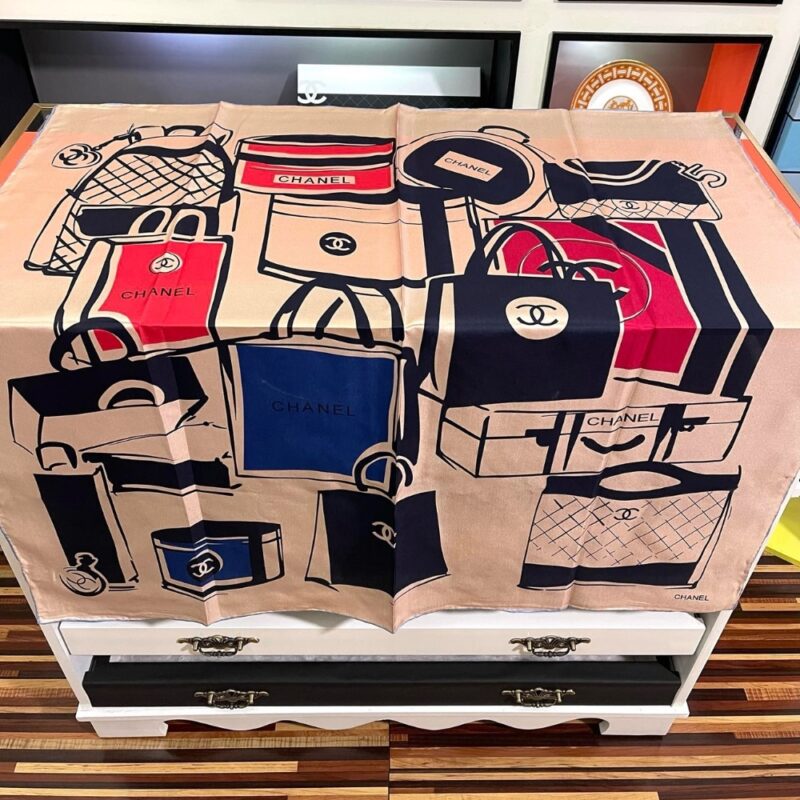 Chanel Luggage Print Silk Scarf Cream 90cm