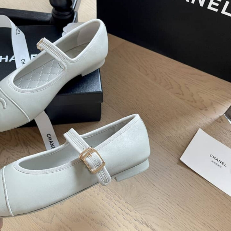 - A rounded toe with an embroidered Chanel CC logo