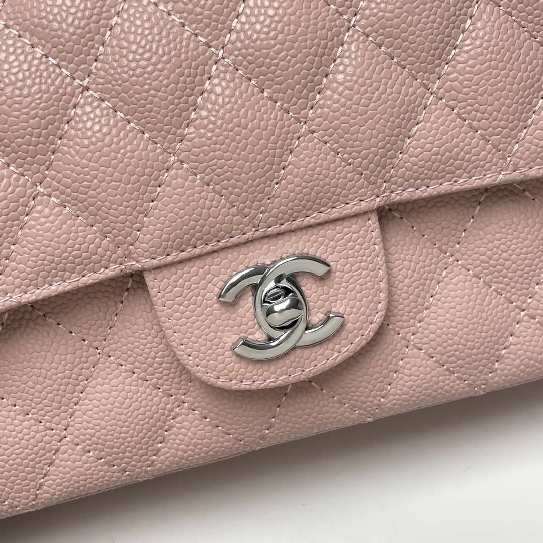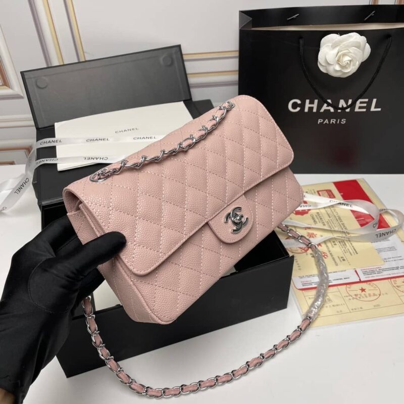 Chanel Medium Classic Flap Bag Silver Hardware Pink / 25cm / 9.8 inches