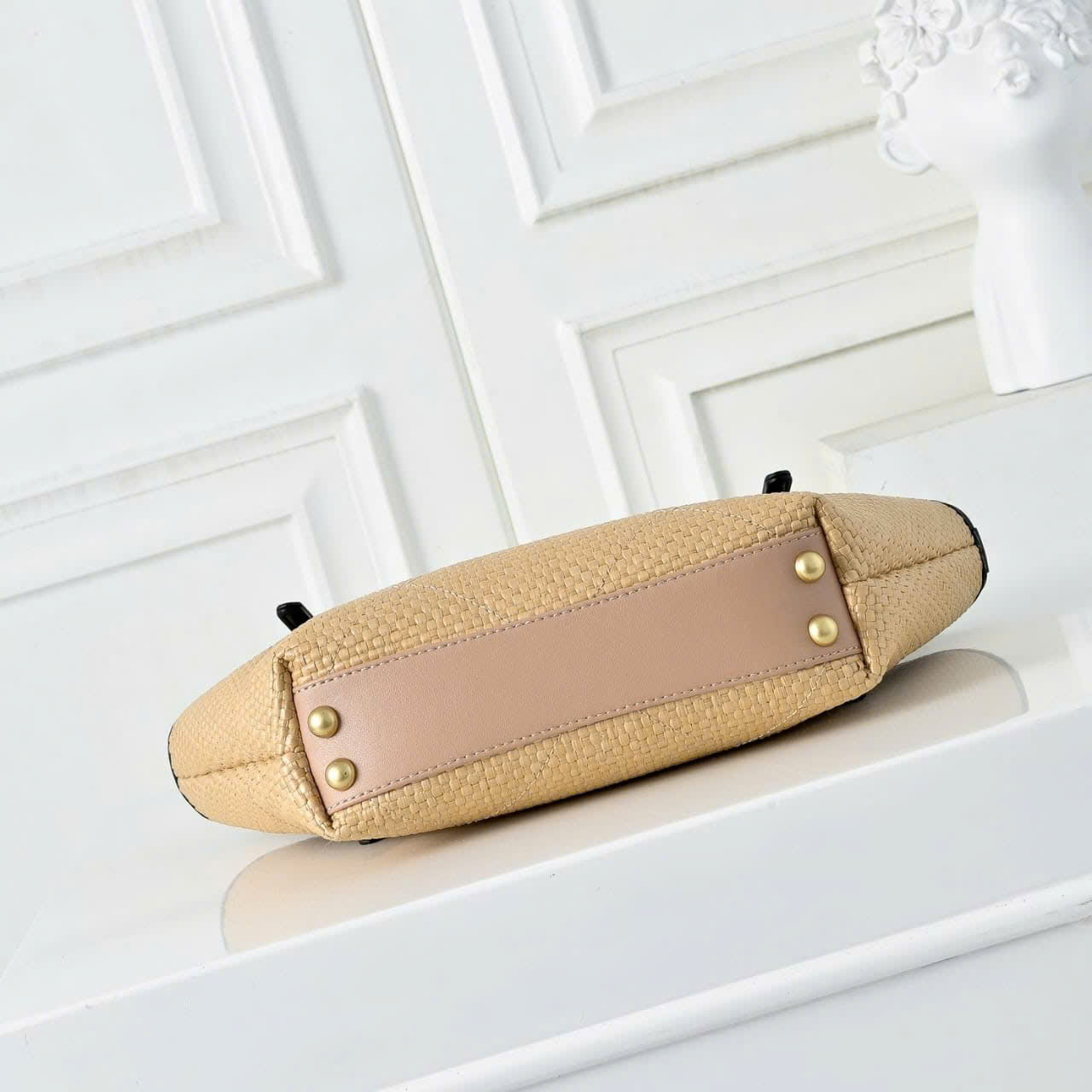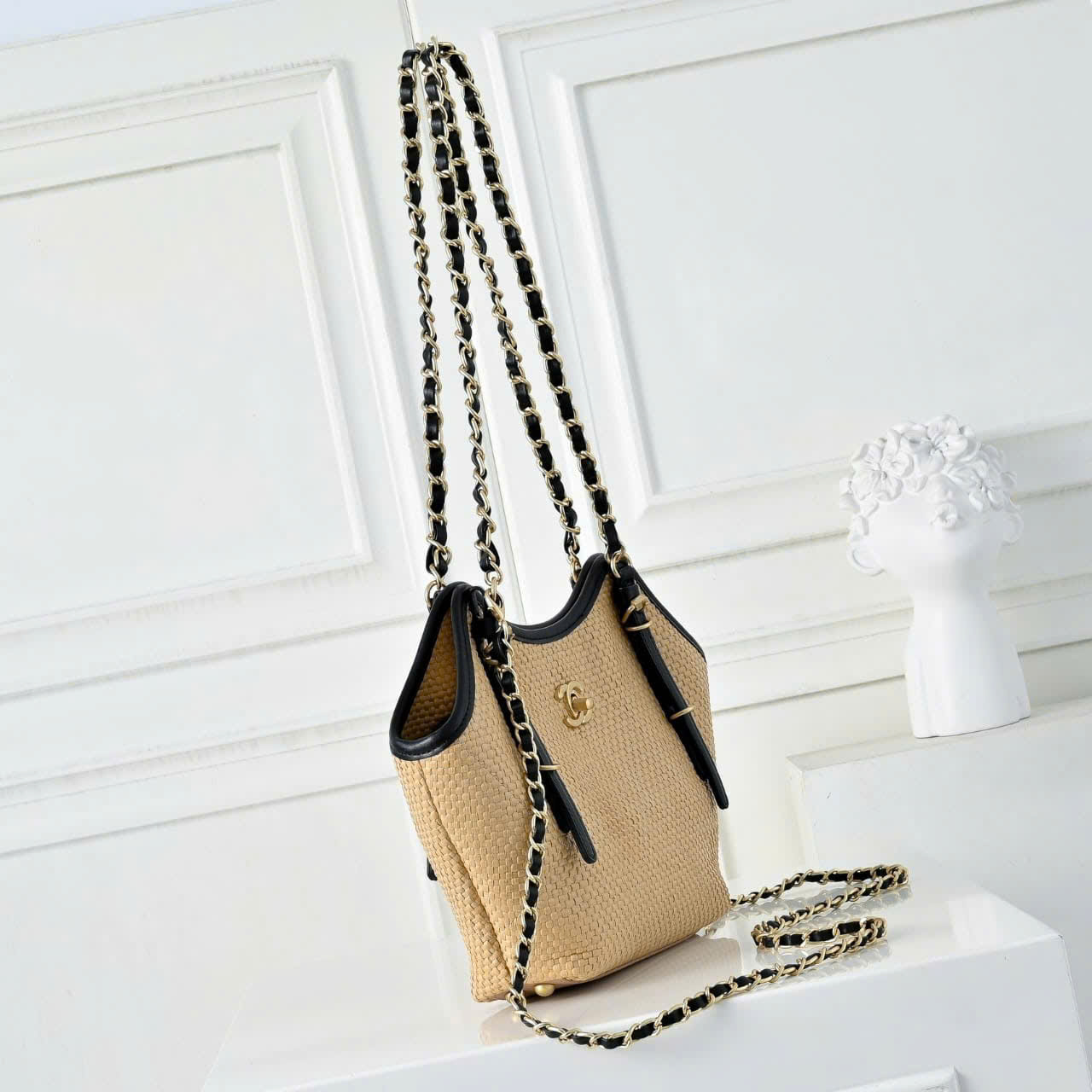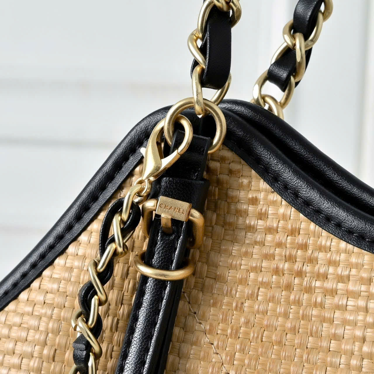 - Braided straw effect and signature interlocking CC logo on the front