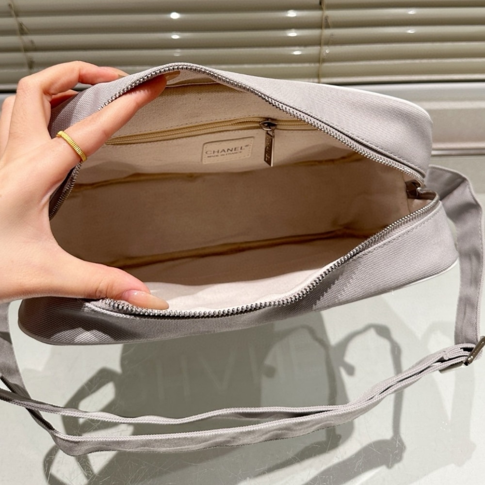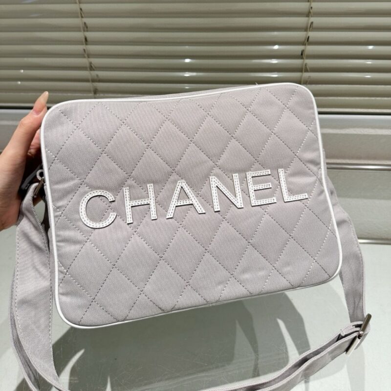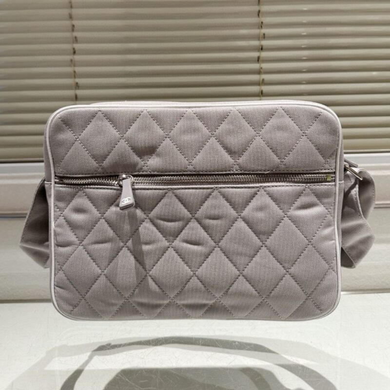 Chanel Messenger Bag Quilted Canvas Light Grey 30Cm