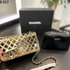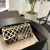 Chanel Metallic Diamond Lined Black Leather Chain Flap Bag Gold 18Cm As2514 B05552 Nc533