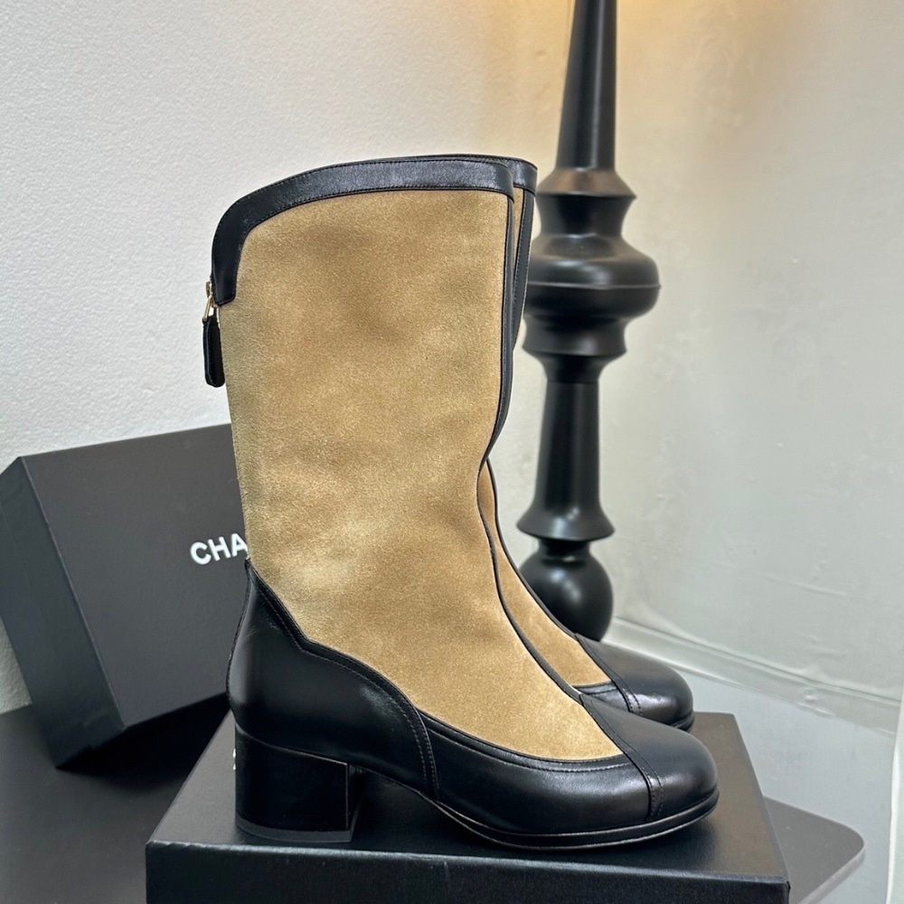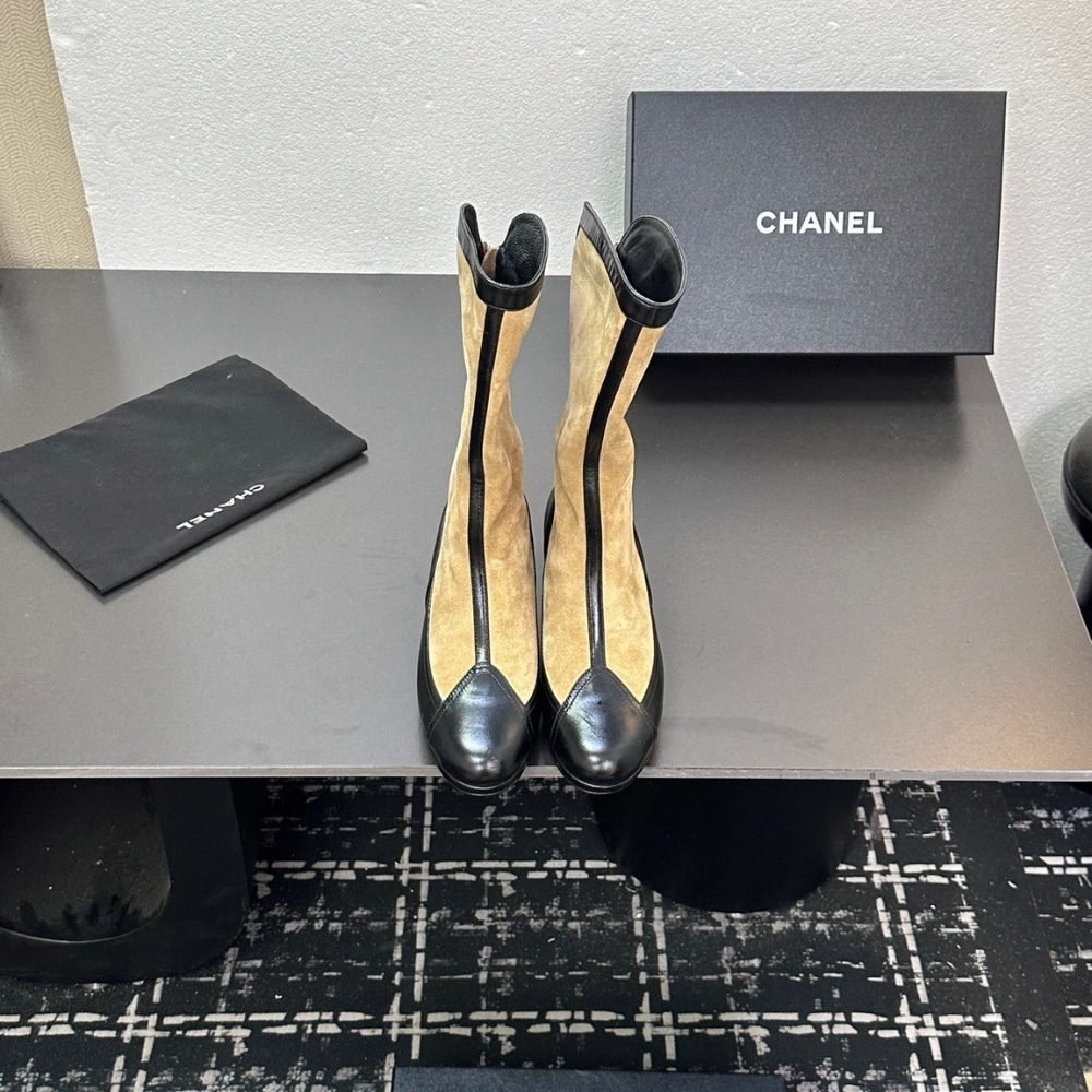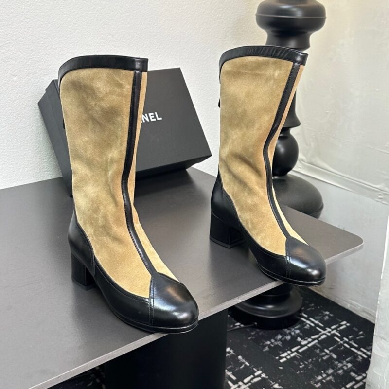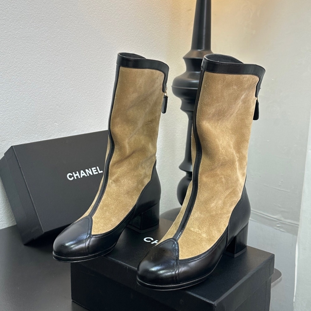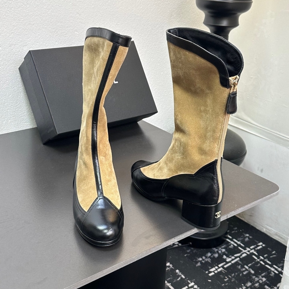 CHANEL MÉTIERS DART HIGH BOOTS BEIGE AND BLACK G46591 B21103 U2030