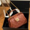Chanel Mini Bag With Top Handle Shiny & Gold Tone Metal Brown AS4958 B16872 NY562 / 19cm / 7.5in