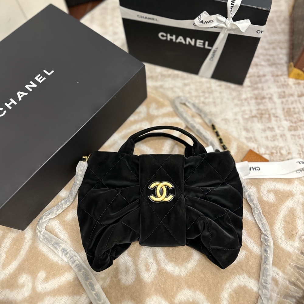 Chanel Mini Bow Bag Black / 8.3 x 4.7 inches / Velvet Effect Nylon / Fit Daily Essentials / Daily Bags