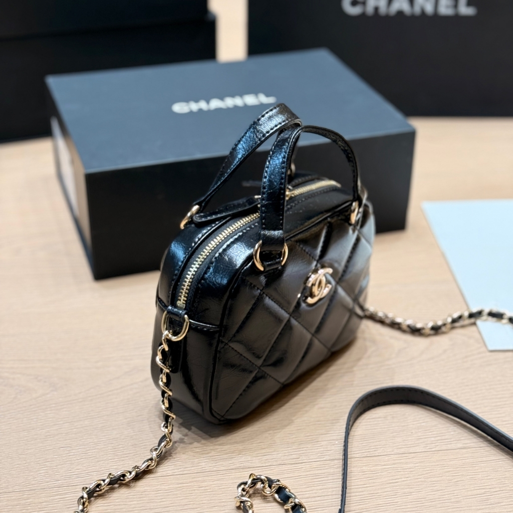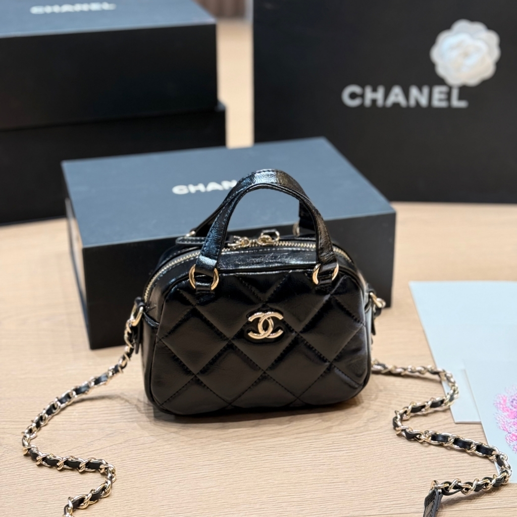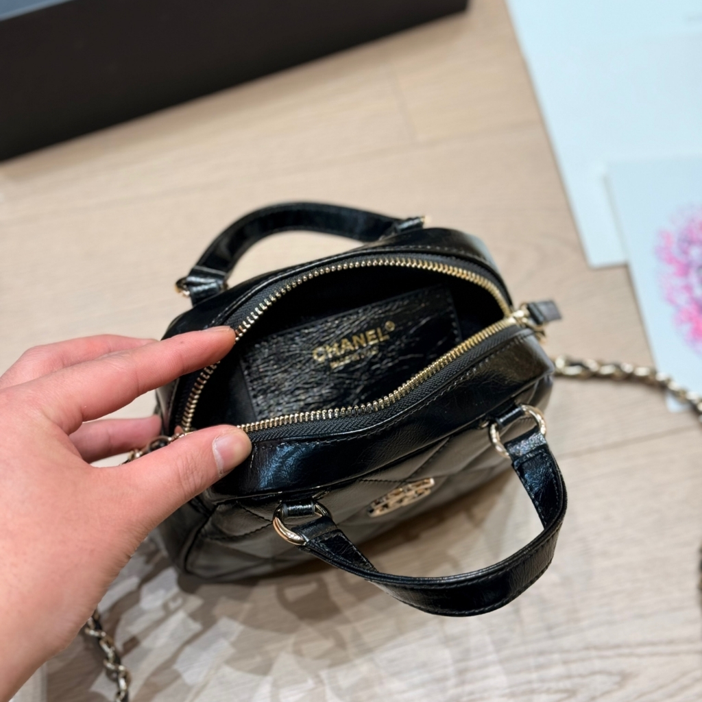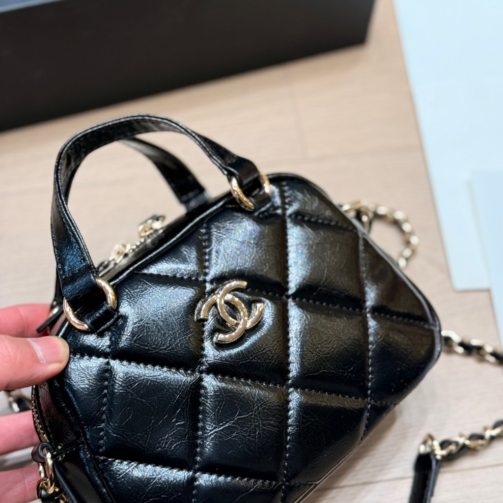 Replica 1:1 – Chanel Mini Bowling Bag Shiny Crumpled And Gold Tone Black 18cm AS5536 B21393 94305