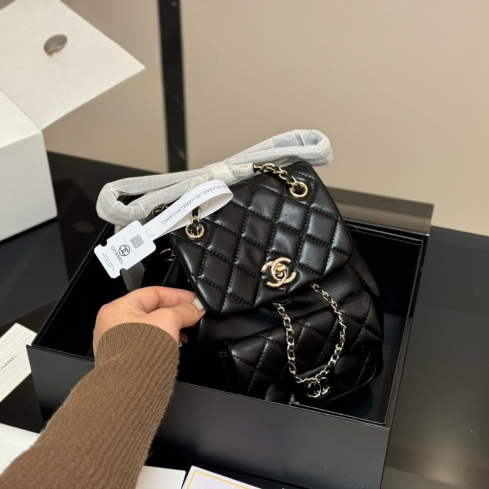 CHANEL MINI DUMA BACKPACK BLACK 20CM AS2908 B09750 94305