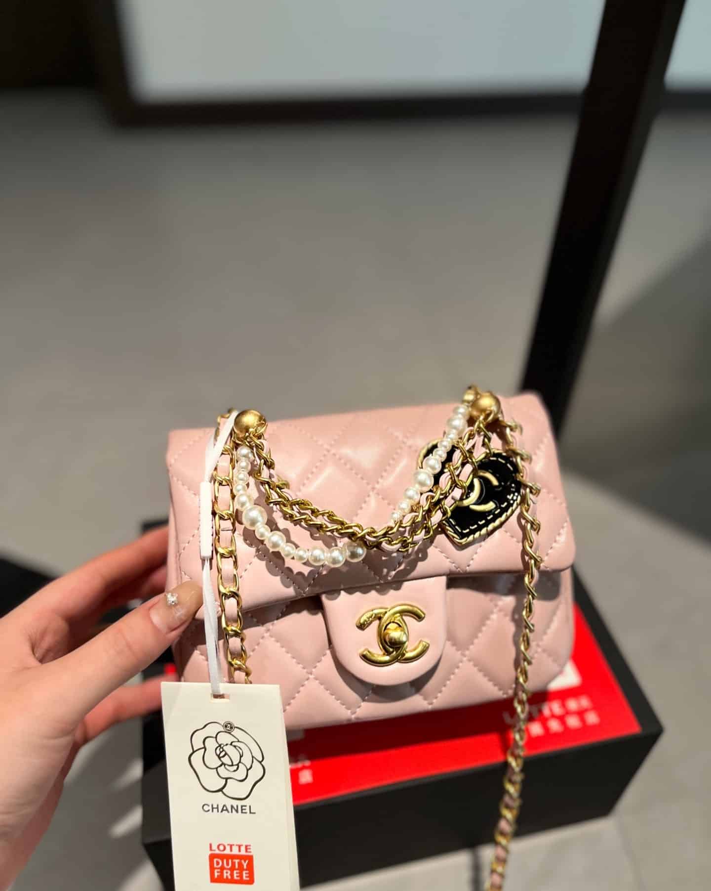 Chanel// Mini Flap Bag// Pink// 17cm