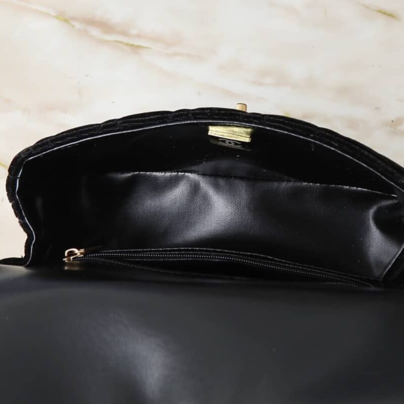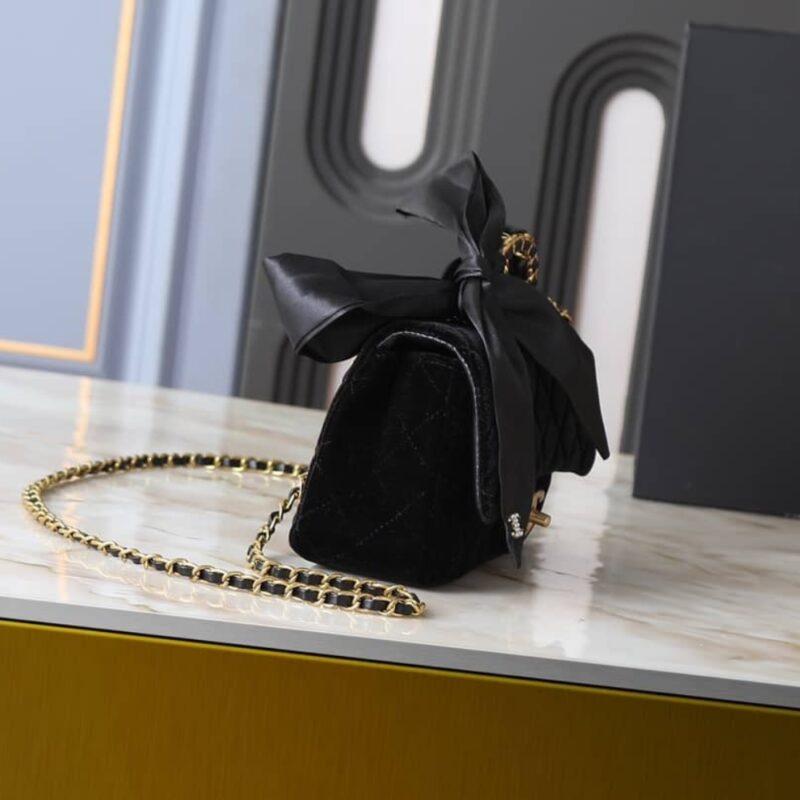 Chanel Mini Flap Bag Black / Velvet Silk / 7.9 x 5.1 x 2.4 inches / Gold Tone Metal / Elegant Style / Daily Bags