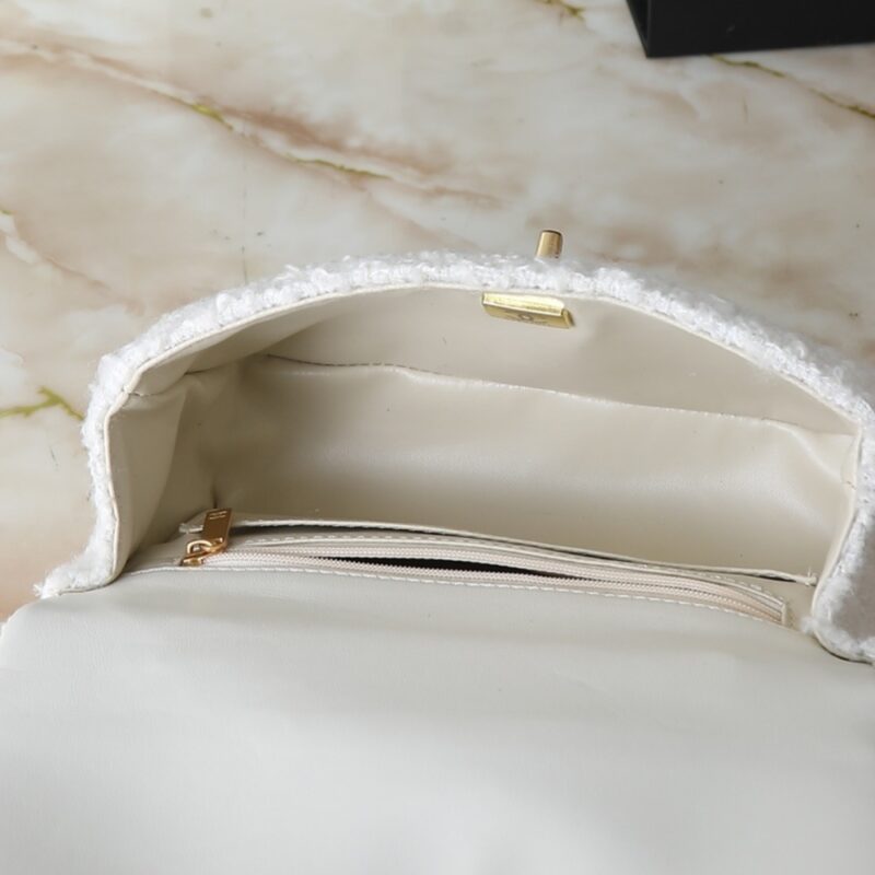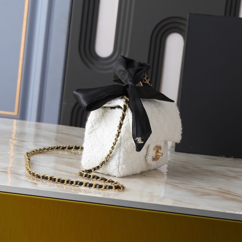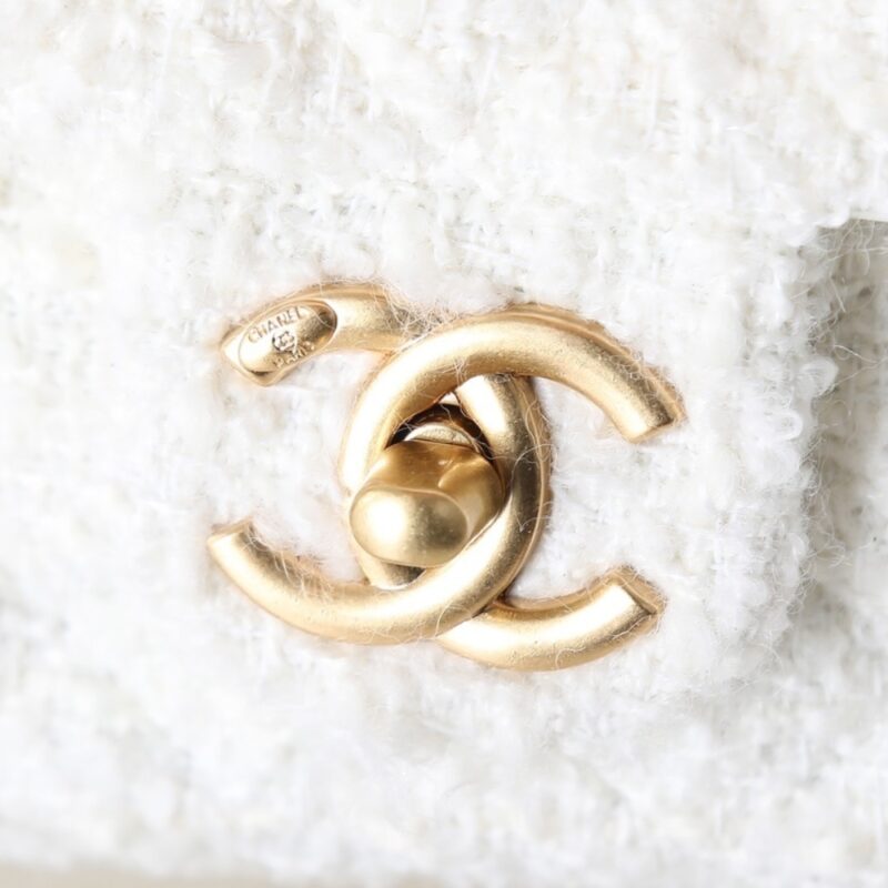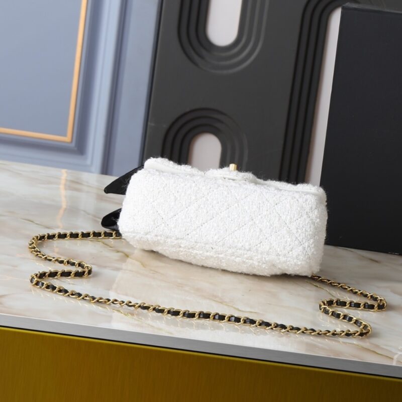 Chanel Mini Flap Bag White / Velvet Silk / 7.9 x 5.1 x 2.4 inches / Gold Tone Metal / Elegant Style / Daily Bags