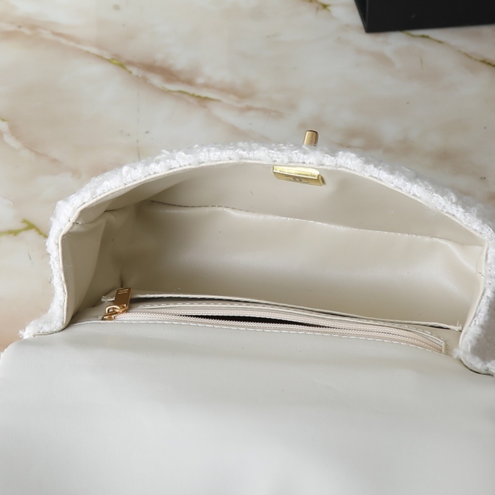 CHANEL MINI FLAP BAG WITH TOP HANDLE VELVET SILK AND GOLD TONE METAL WHITE 20CM AS5875 B22482 MB103