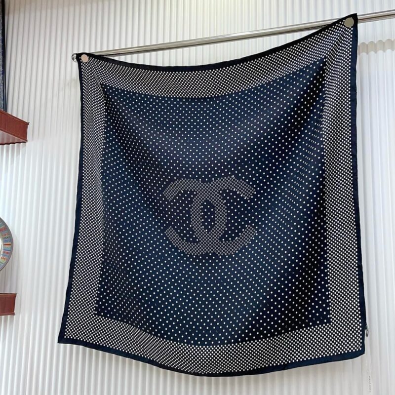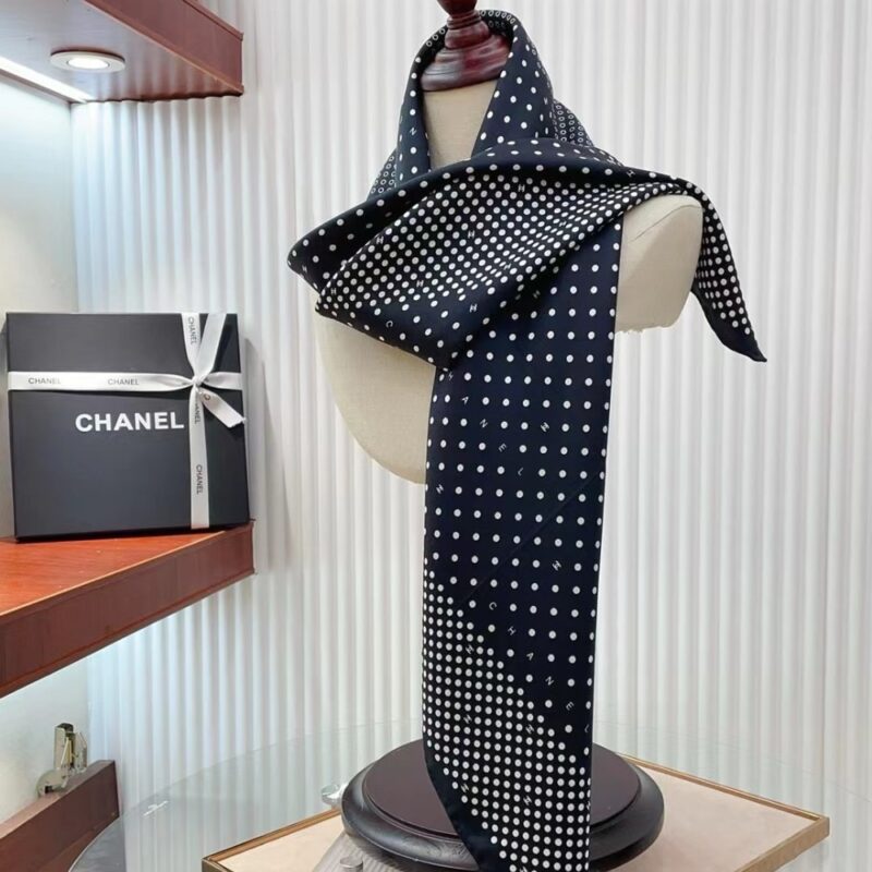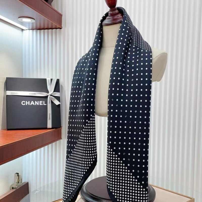 Chanel Polka Dot Pattern Silk Scarf In Black 90cm AA9837 B15685 NV127