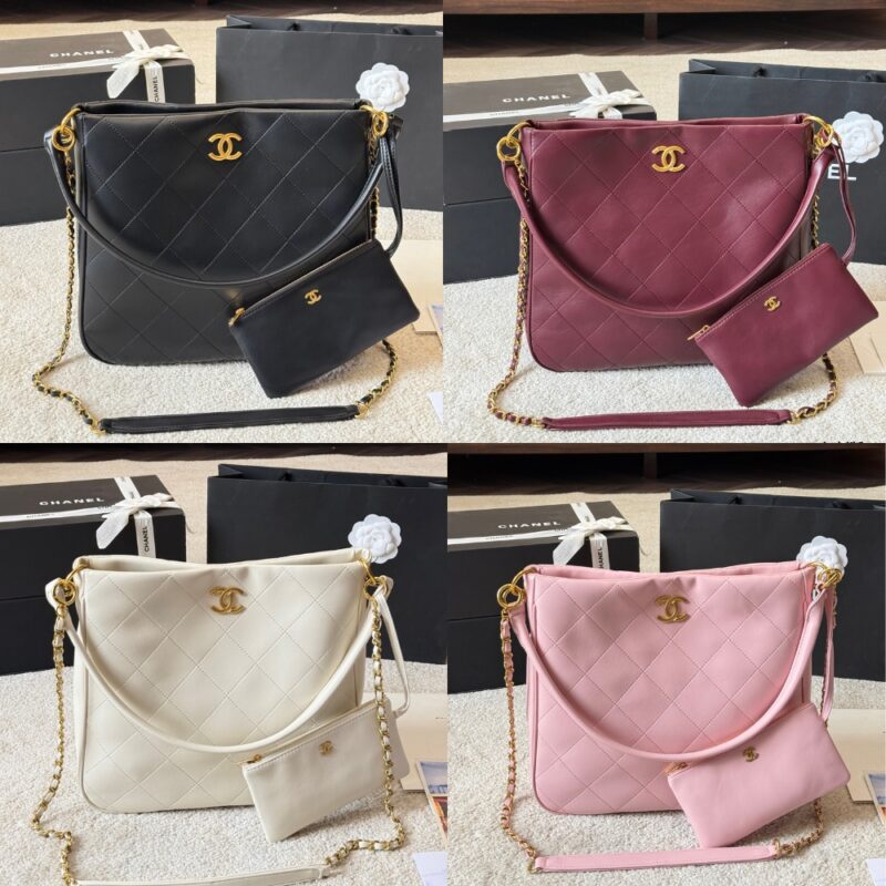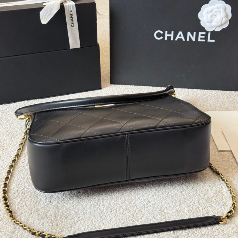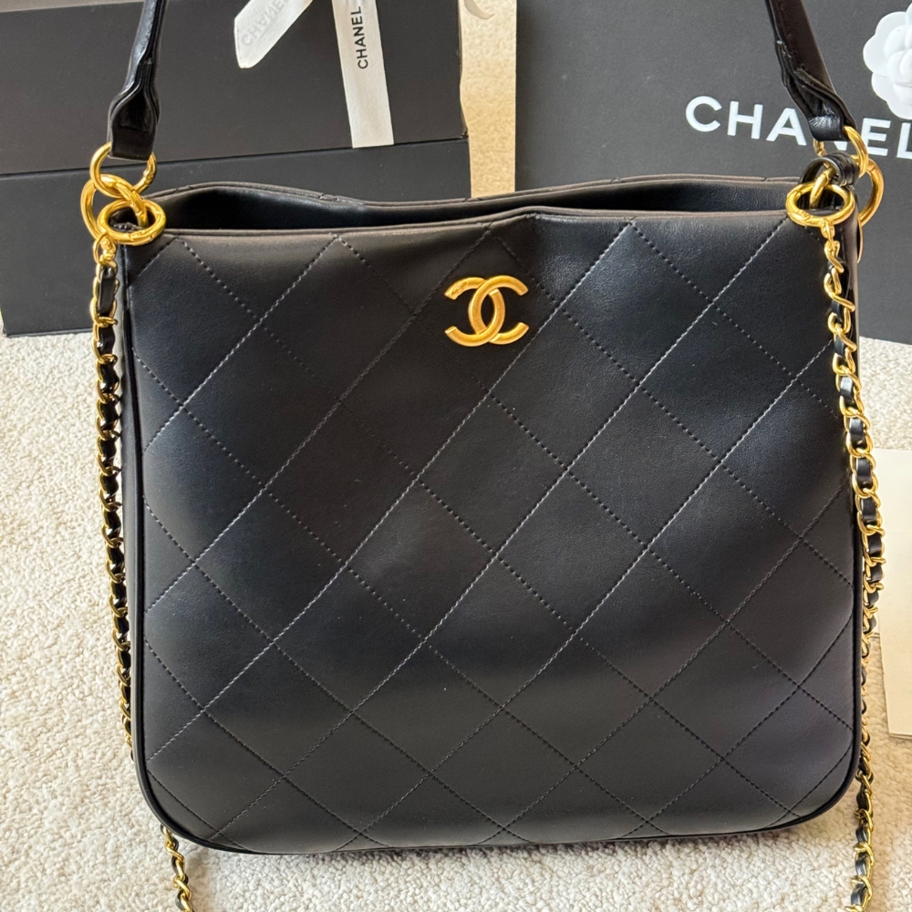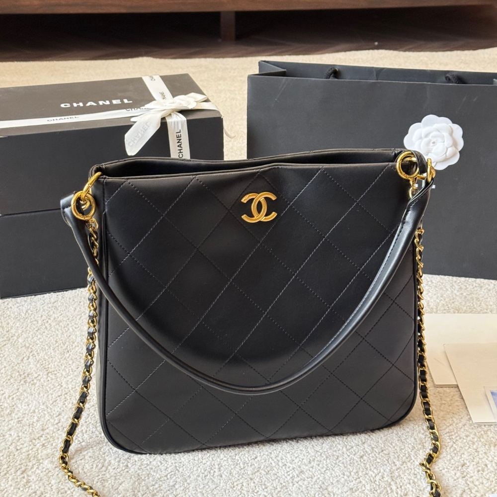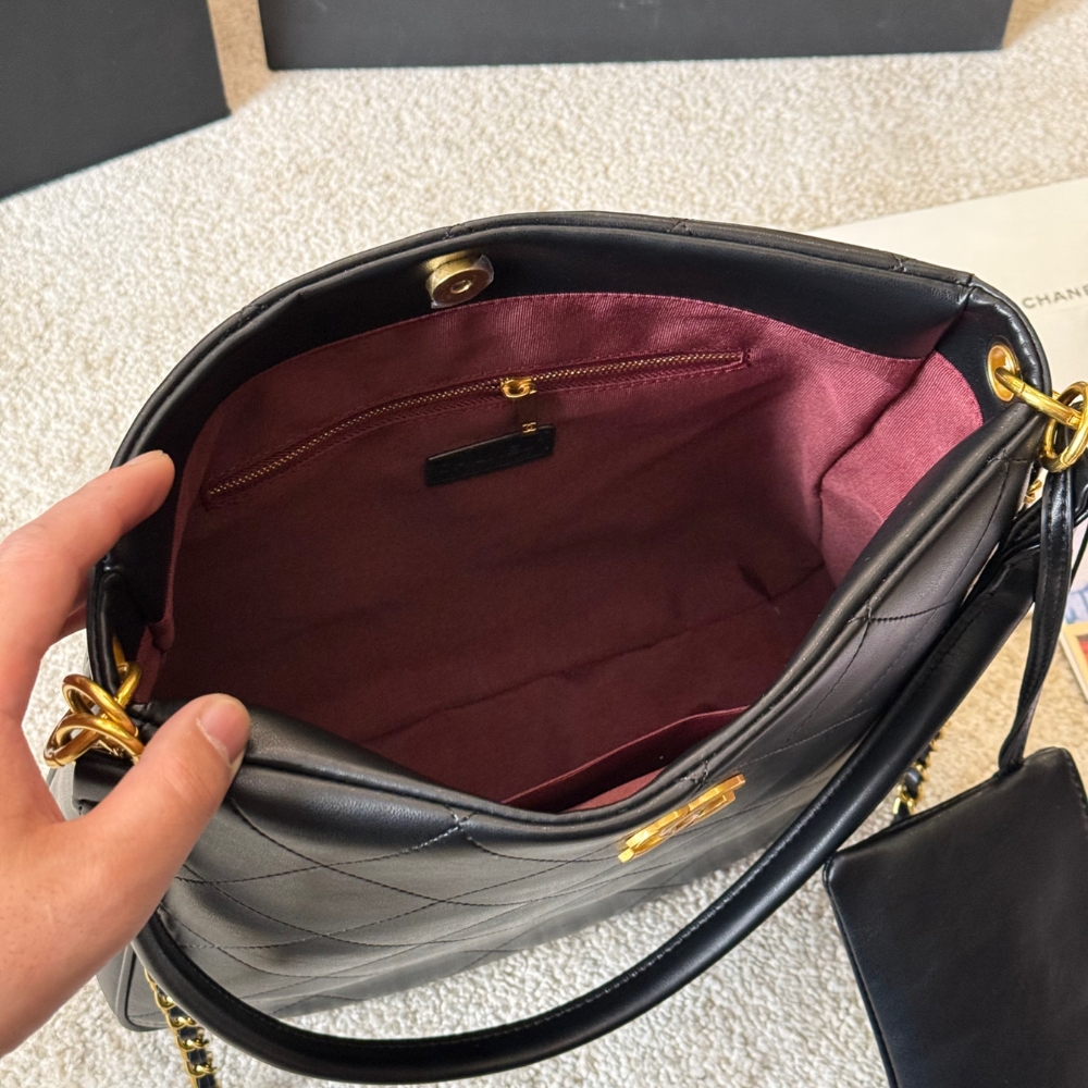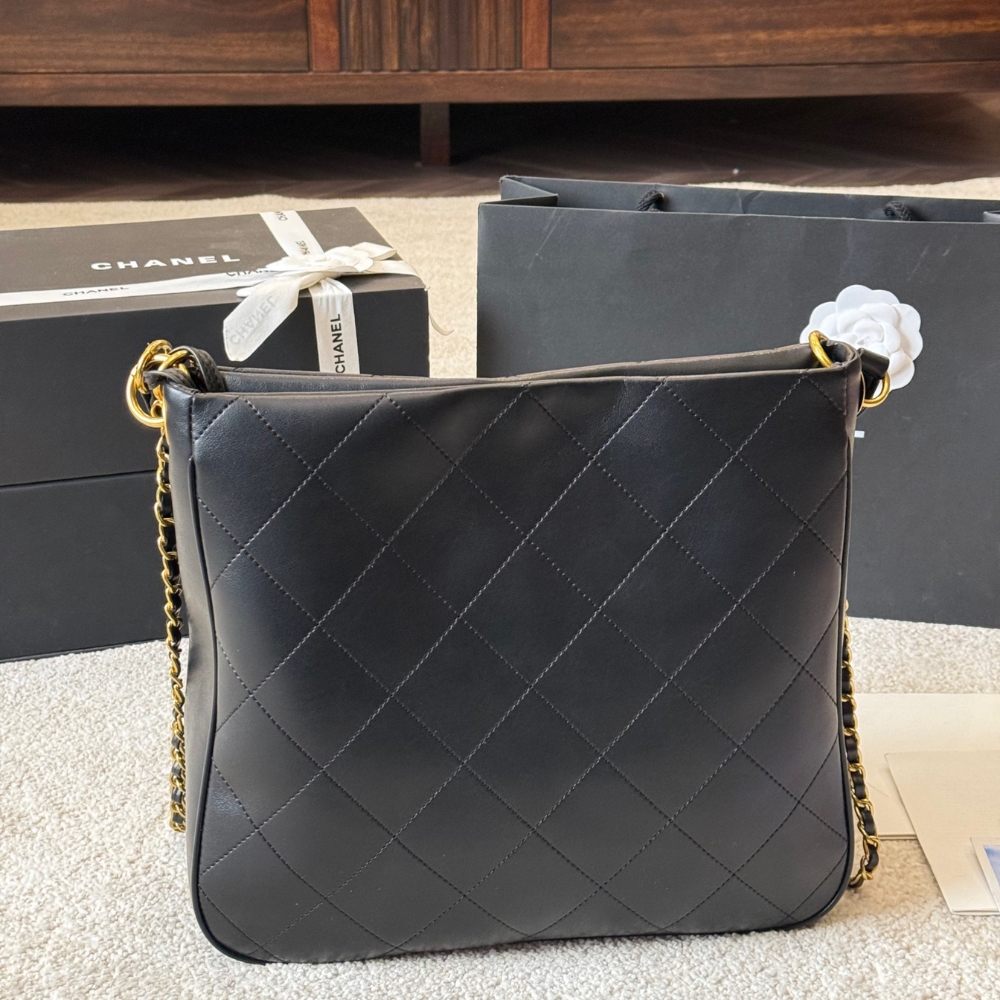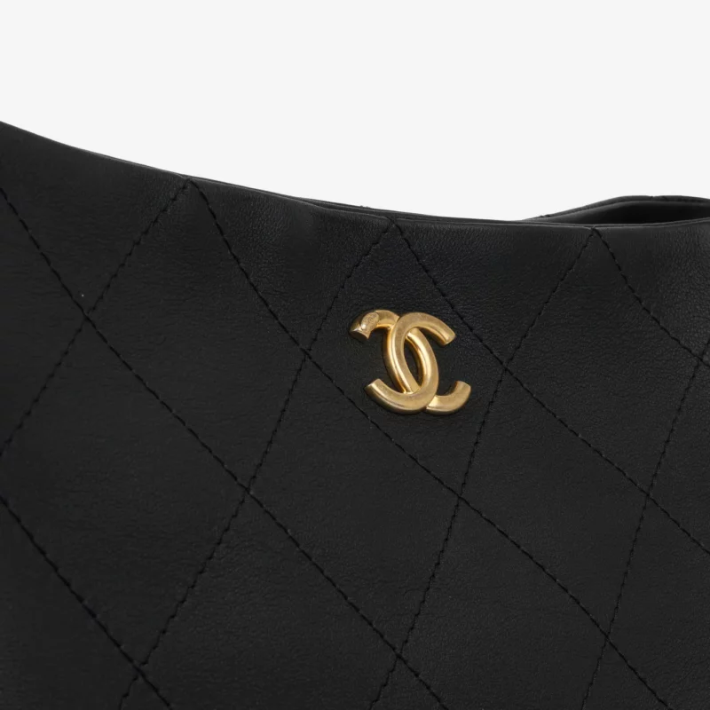 Chanel Quilted Hobo Shoulder Bag Black / 13.0 x 11.8 inches / Gold-tone hardware / Fit Phone, Wallets / Daily Bags