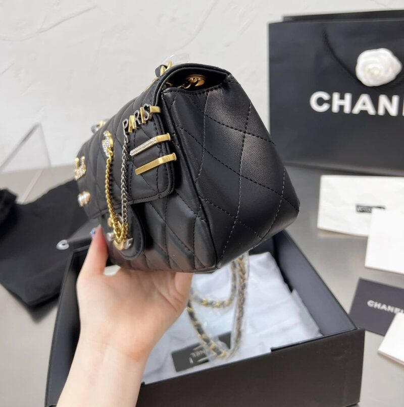 Chanel //Quilted Mini Coco Clips Flap Gold And Ruthenium Hardware //Black //20cm
