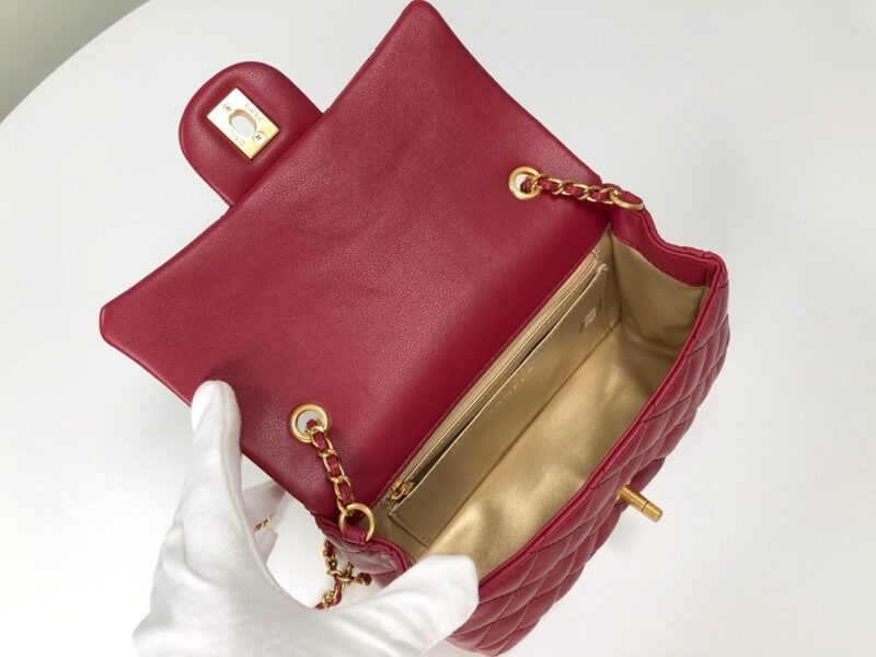 Chanel Quilted Mini Cc Rectangular Pearl Crush Flap Bag / Red 20cm