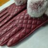 Chanel Rabbit Fur Touch Screen Gloves In Red Nappa Leather