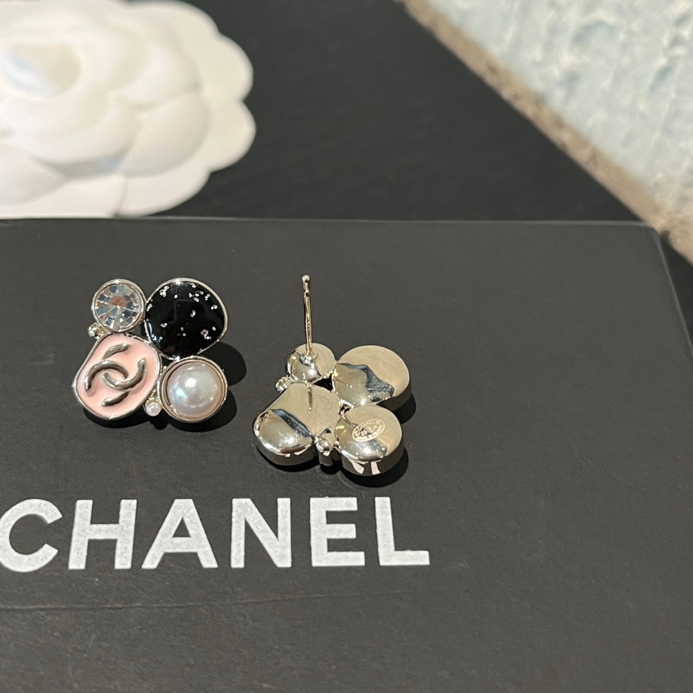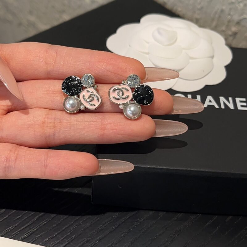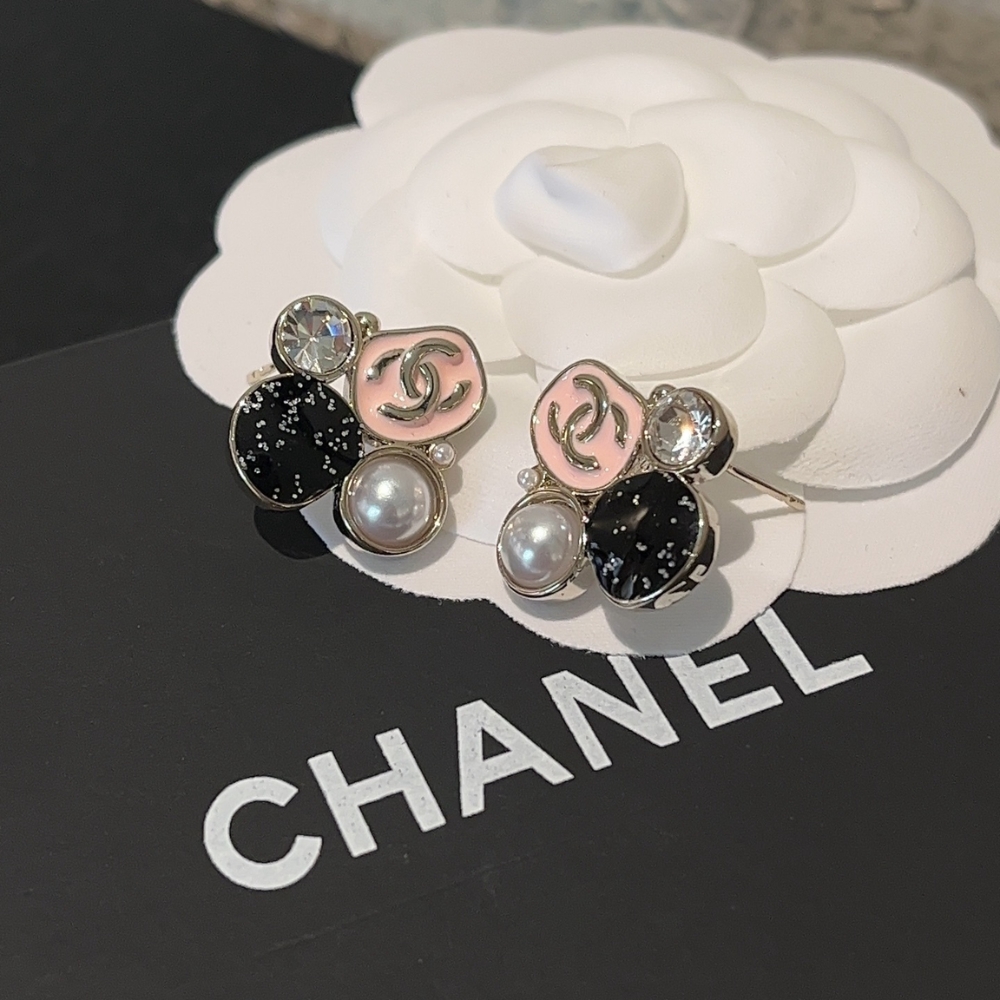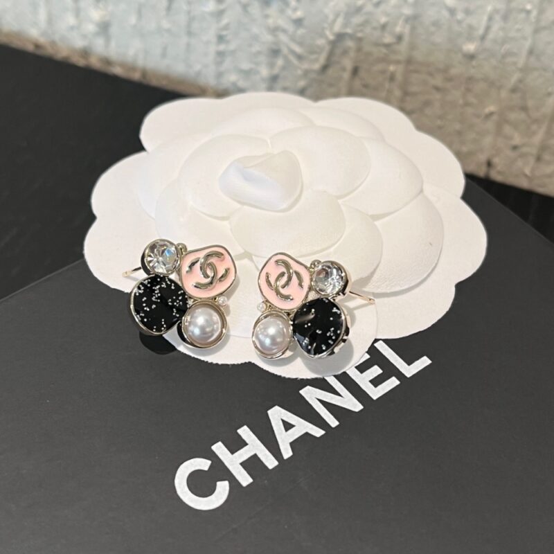 The Chanel Resin Pearl And Sparkling Crystal Light Gold Earrings are a charming and eclectic accessory that combines signature House codes with a playful, modern aesthetic. Each earring features a clustered design of diverse elements, including a pastel pink enamel piece adorned with a Silover-tone CC logo, a shimmering black glitter orb, a classic white resin pearl, and a sparkling clear crystal. Expertly crafted with a polished silver-finish hardware, these studs offer a sophisticated yet whimsical touch suitable for both day and evening wear. This unique combination of textures and colors makes them a standout collector’s piece that beautifully captures the timeless elegance of the Chanel brand.