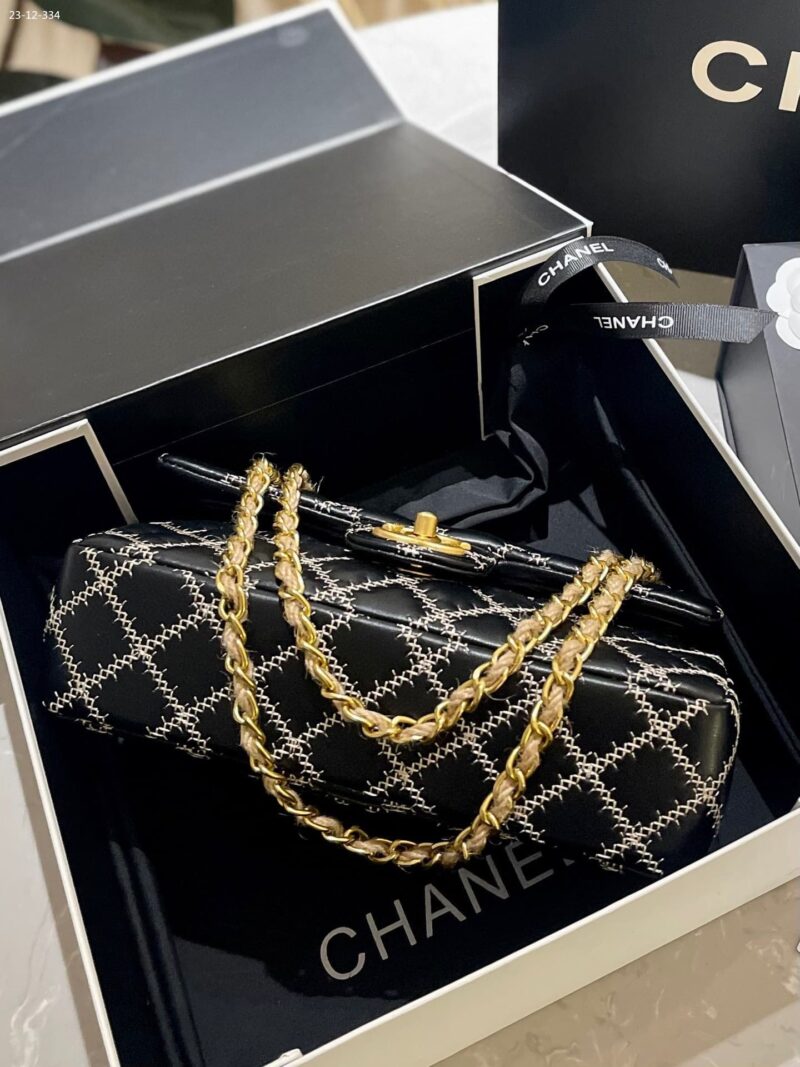 Chanel //Satin Flap Shoulder Bag With Natural Hemp Diamond Stitching //Black //25cm