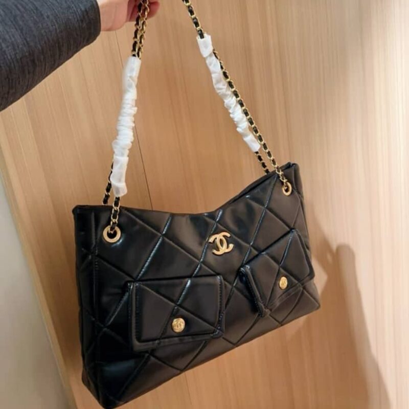 Chanel Shopping Bag Gold Tone Metal Black 38Cm / 13.0 inches
