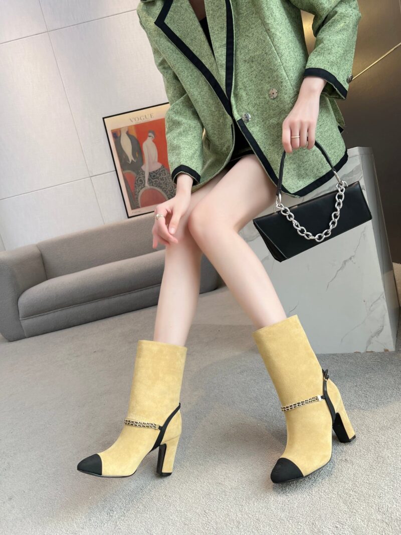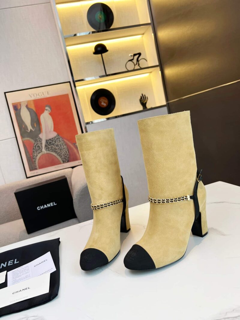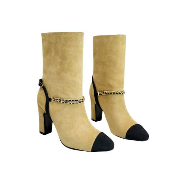 CHANEL SHORT BOOTS SUEDE KIDSKIN BEIGE AND BLACK