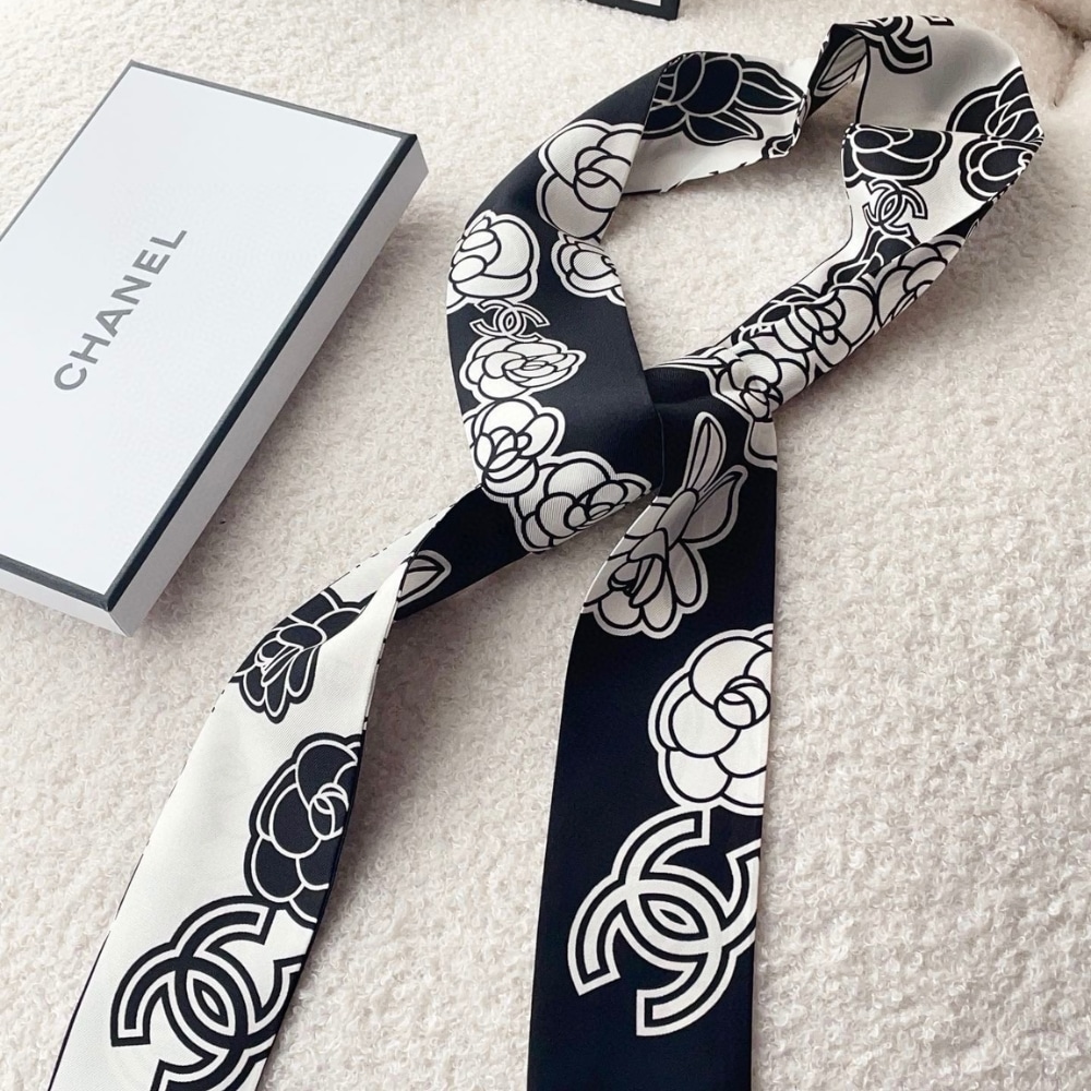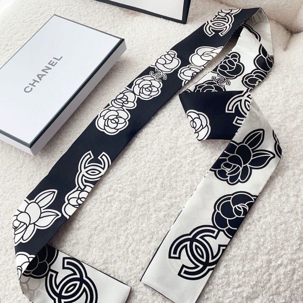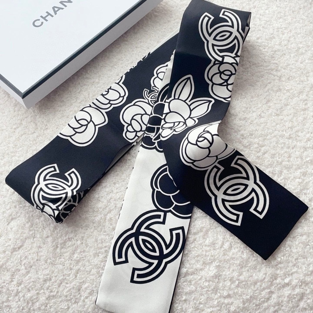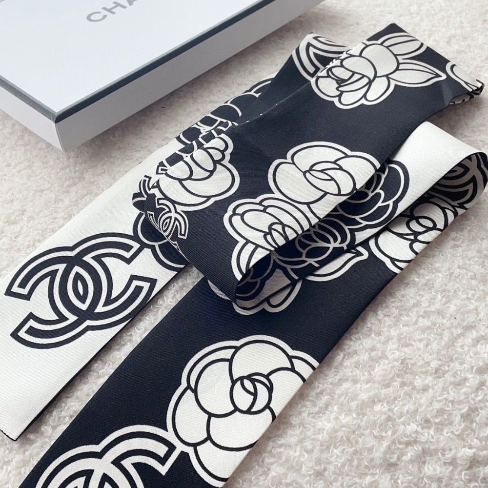 Chanel Silk CC Camellia Slim Bandeau Ecru Black