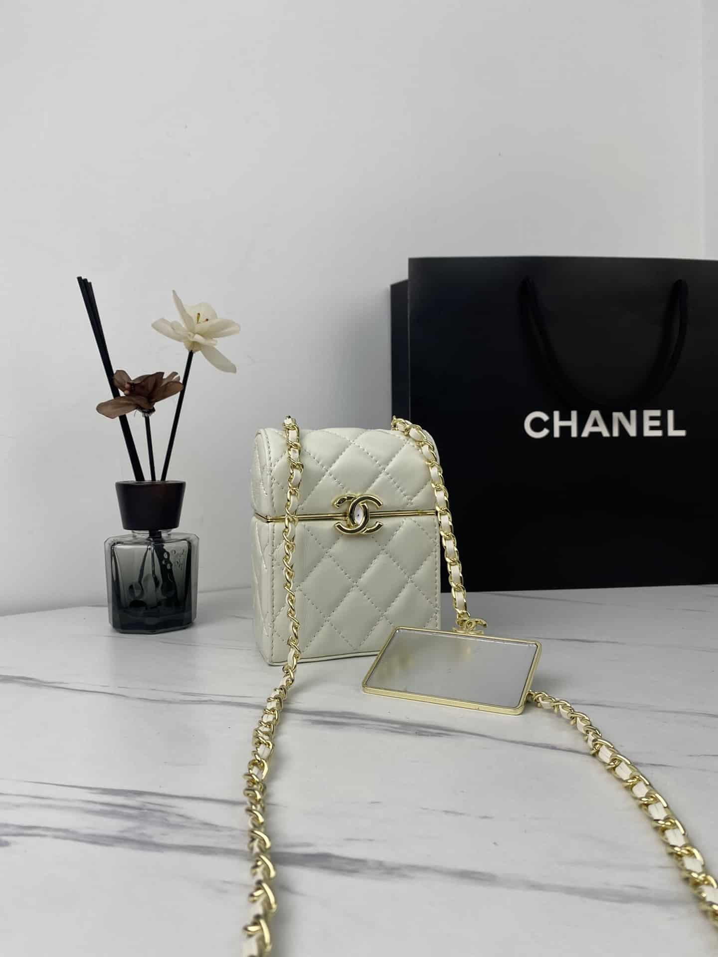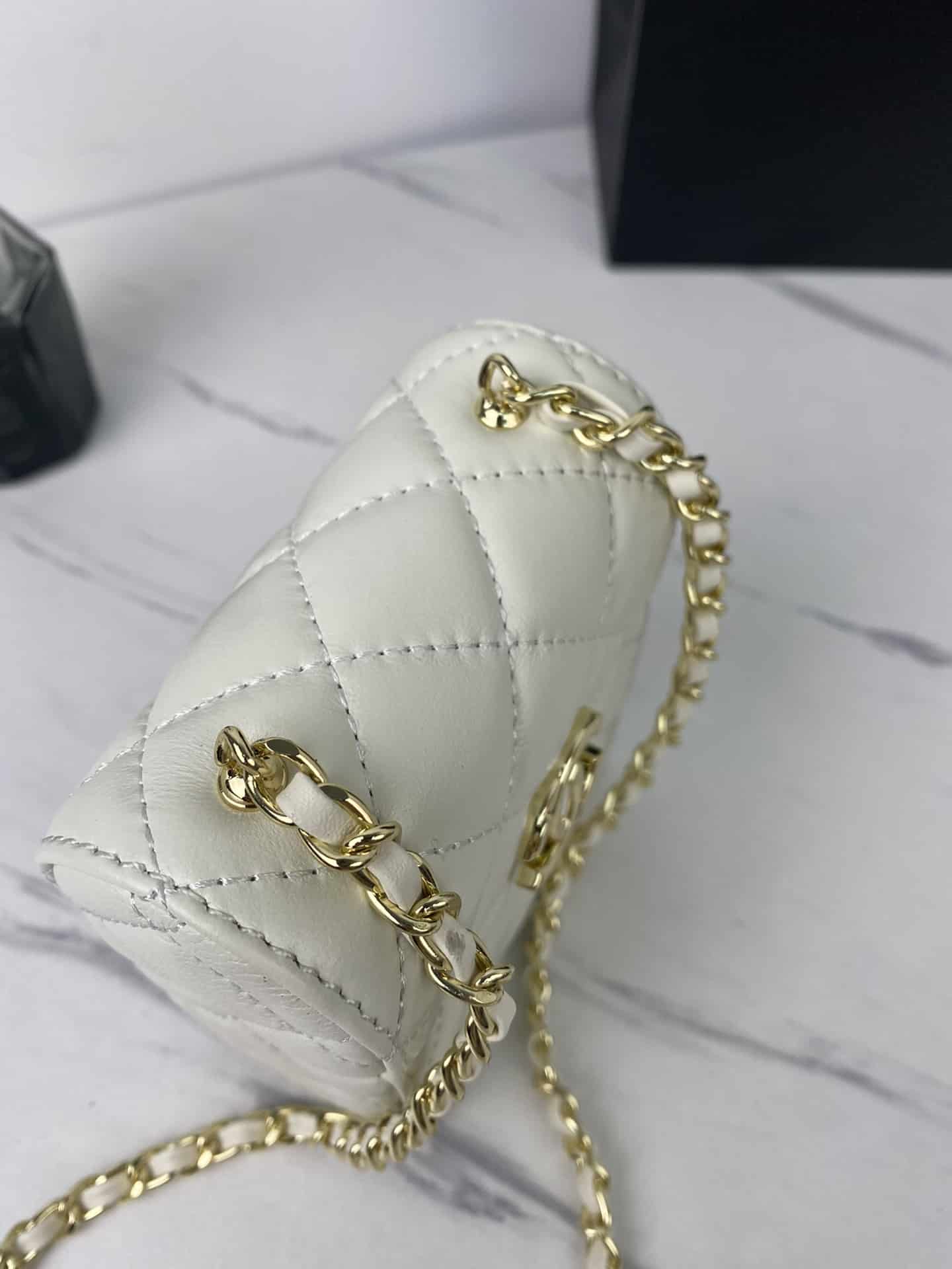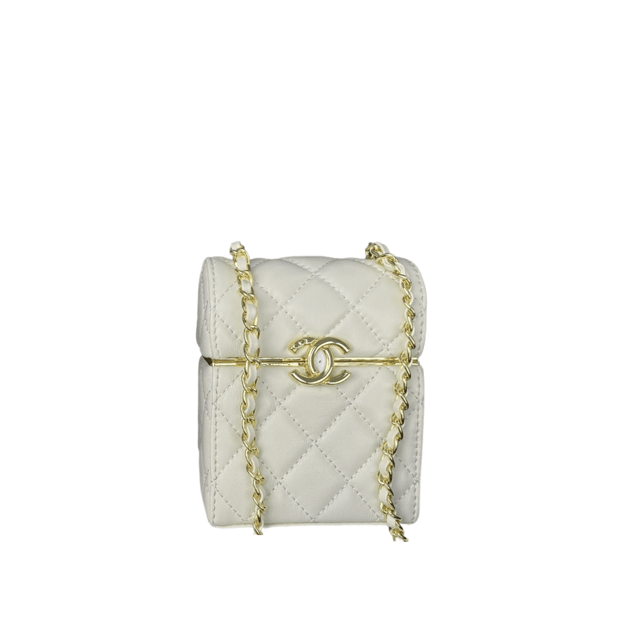 CHANEL SMALL BOX WITH CHAIN IN WHITE 12CM AP2656
