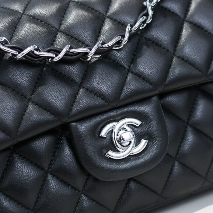 Chanel //Small Classic Flap Bag Black Leather With Silver Hardware A01113 Y01480 94305 / 25cm / 9.8 inches