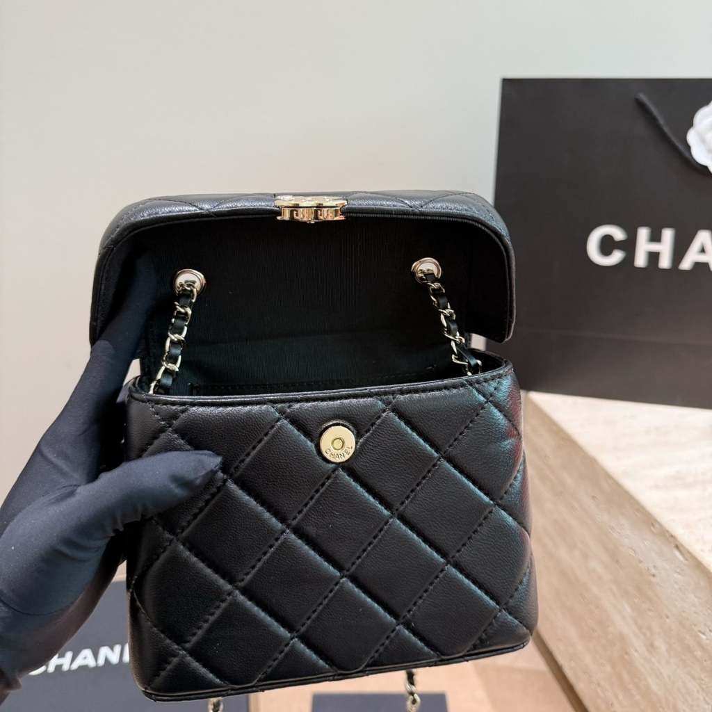 Replica 1:1 – Chanel Small Secret Box Bag Quilted Leather Gold Tone Black 16cm