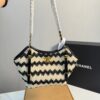 The Chanel Small Shopping Bag in Braided Straw and Gold-Tone Metal is a chic. This model offers a sophisticated Mediterranean aesthetic, replacing traditional leather with a multi-tonal braided straw or cotton-mixed fiber fabric.