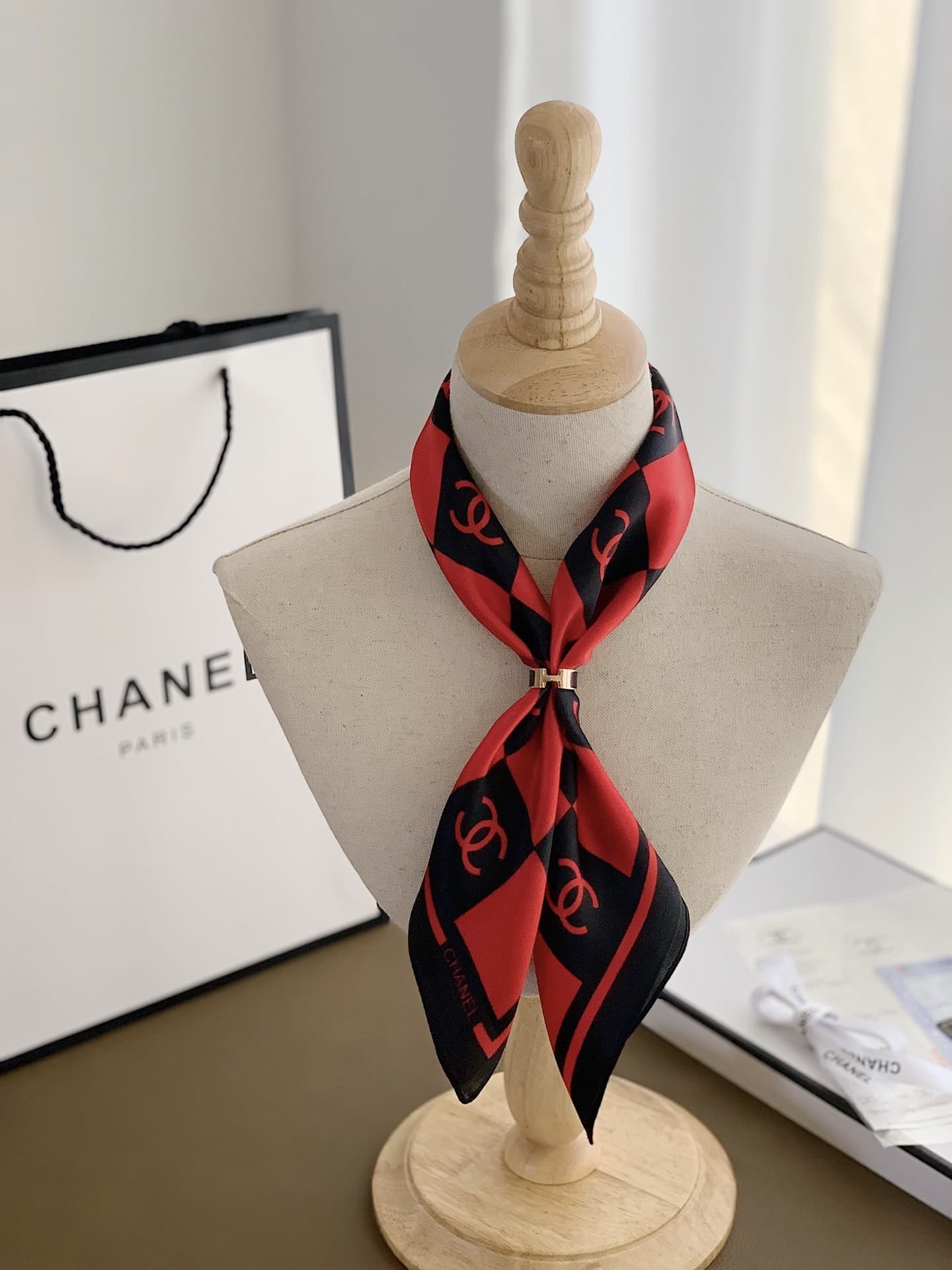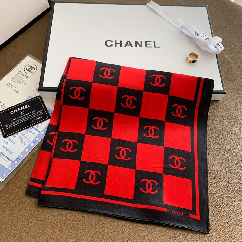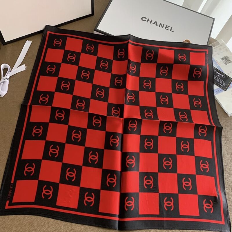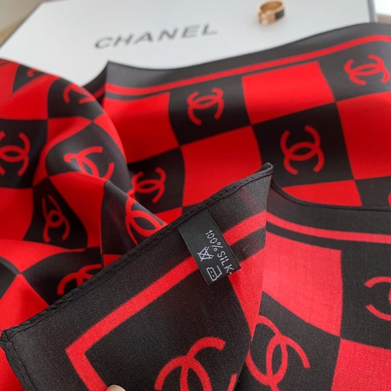 CHANEL SQUARE MOTIF CC LOGO SILK SCARF RED AND BLACK 70CM