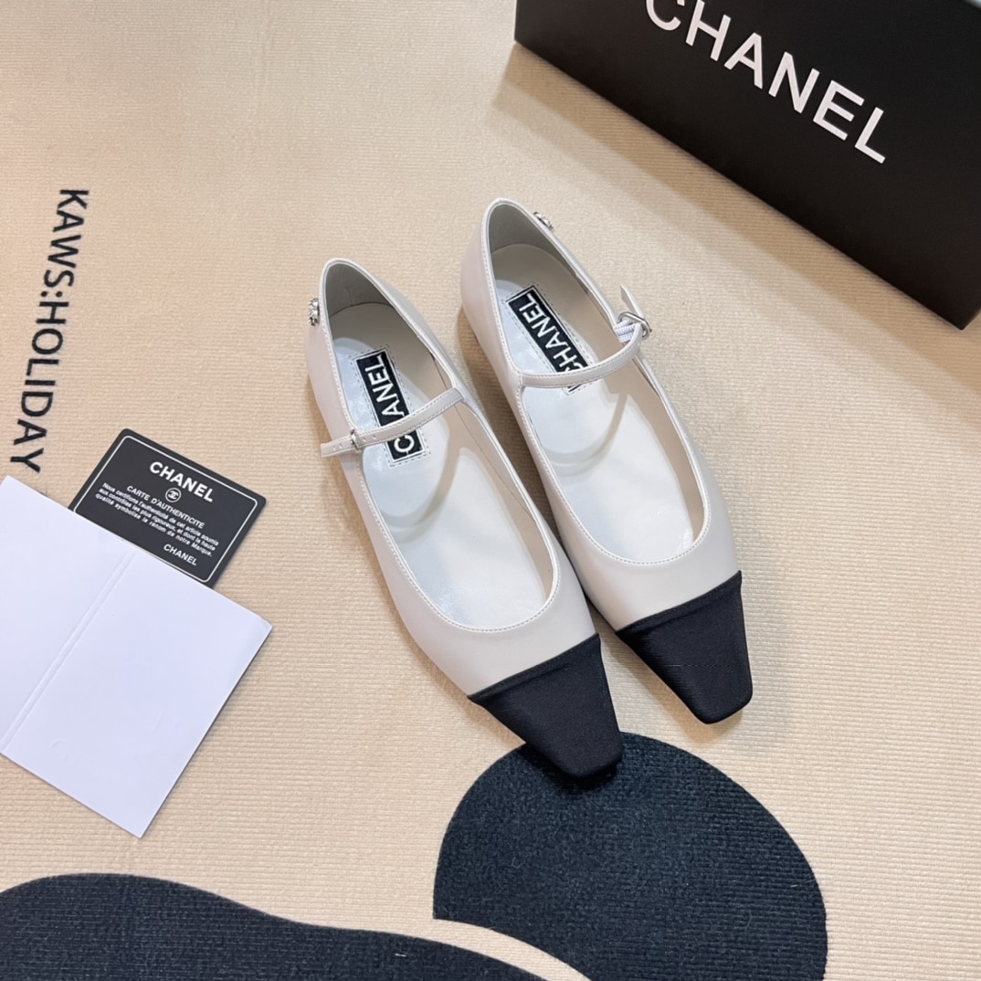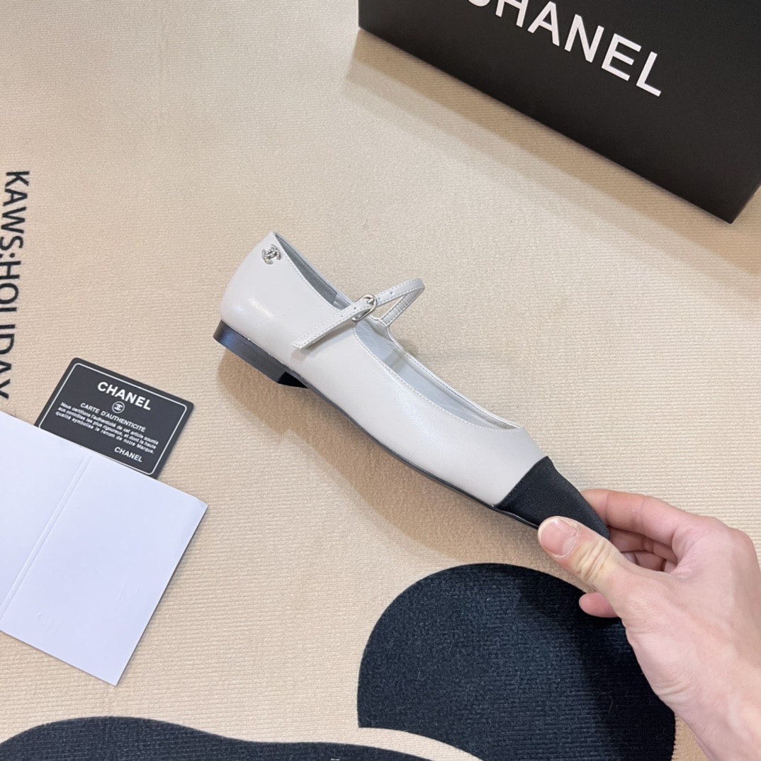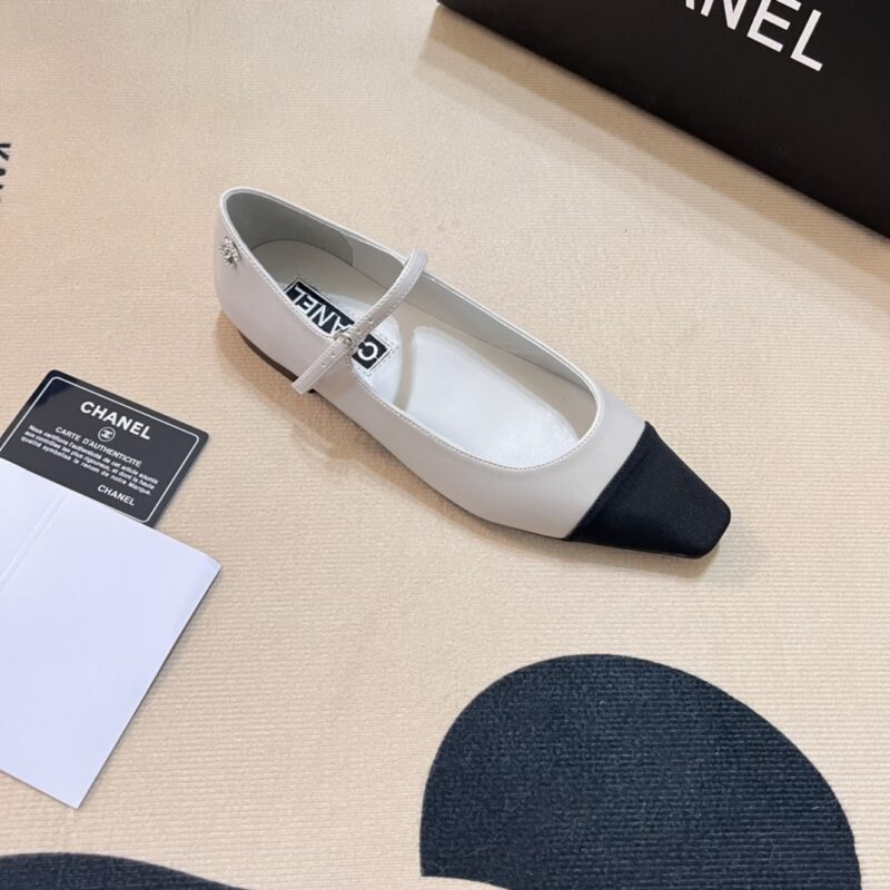 CHANEL SQUARE TOE BALLET FLATS BLACK WHITE