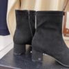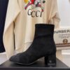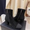 Chanel Square Toe Suede Ankle Boots Black