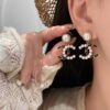 Chanel Stud Earrings Black And Pears Abg562 B22261 U4399