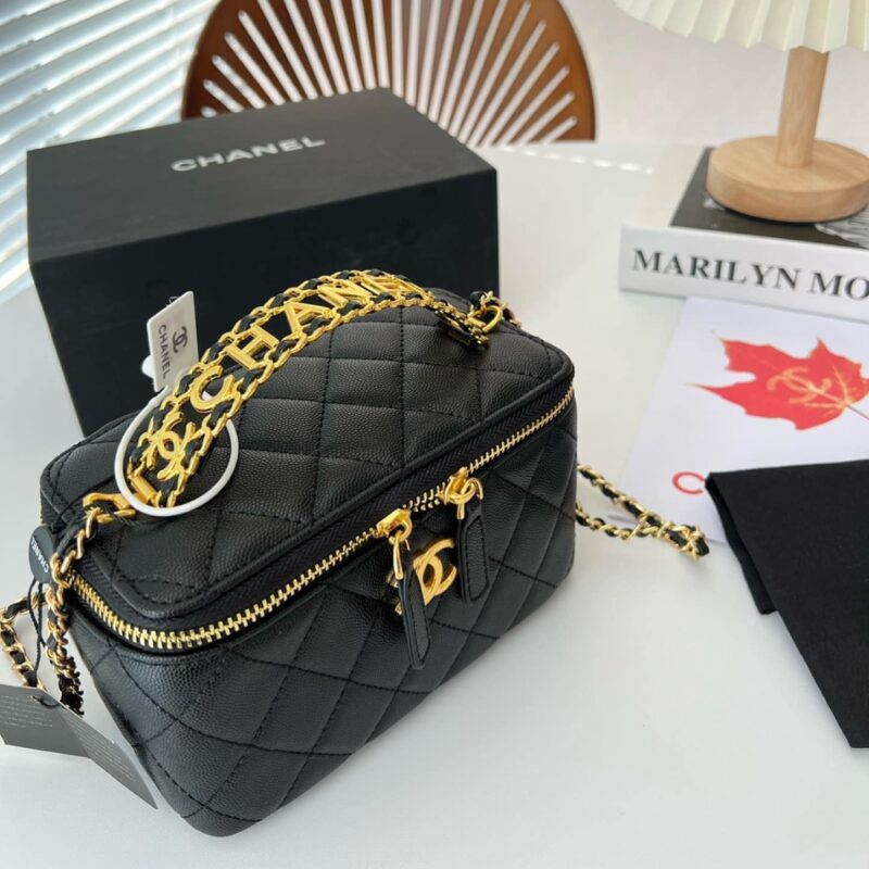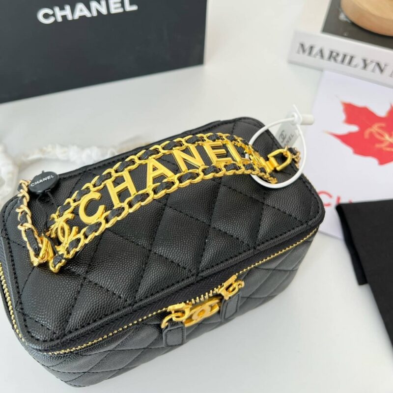 Chanel Top Handle Long Vanity Case With Chain / Black / 6.7 x 3.9 inches
