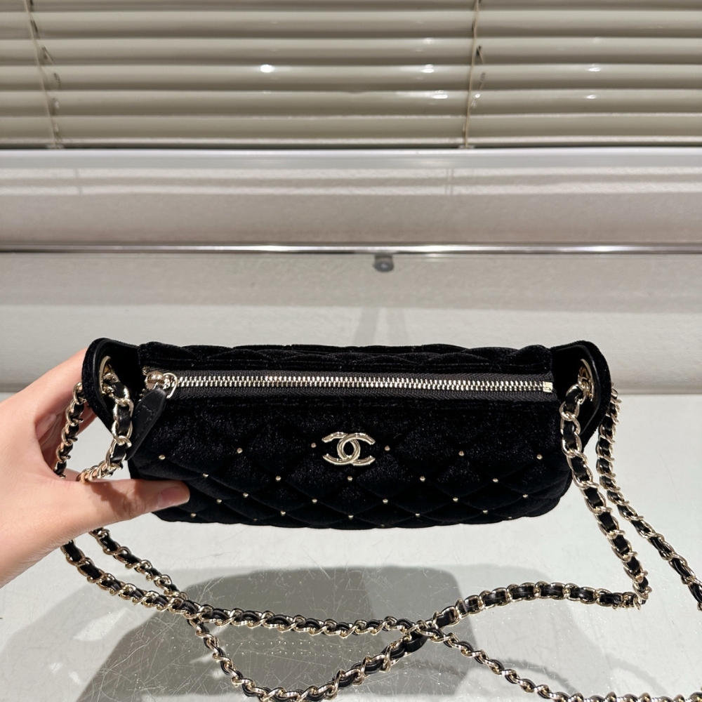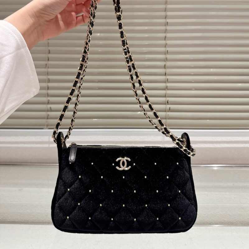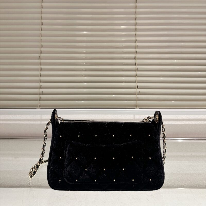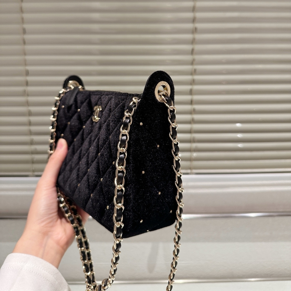 Chanel Velvet Crystal Quilted Chain Black / 8.7 x 4.7 inches / Velvet Crystal / Fit Daily Essentials / Luxury Bags