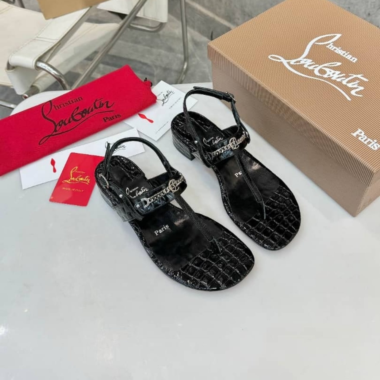 CHRISTIAN LOUBOUTIN MJ EMBELLISHED CROC EFFECT PATENT SANDALS BLACK