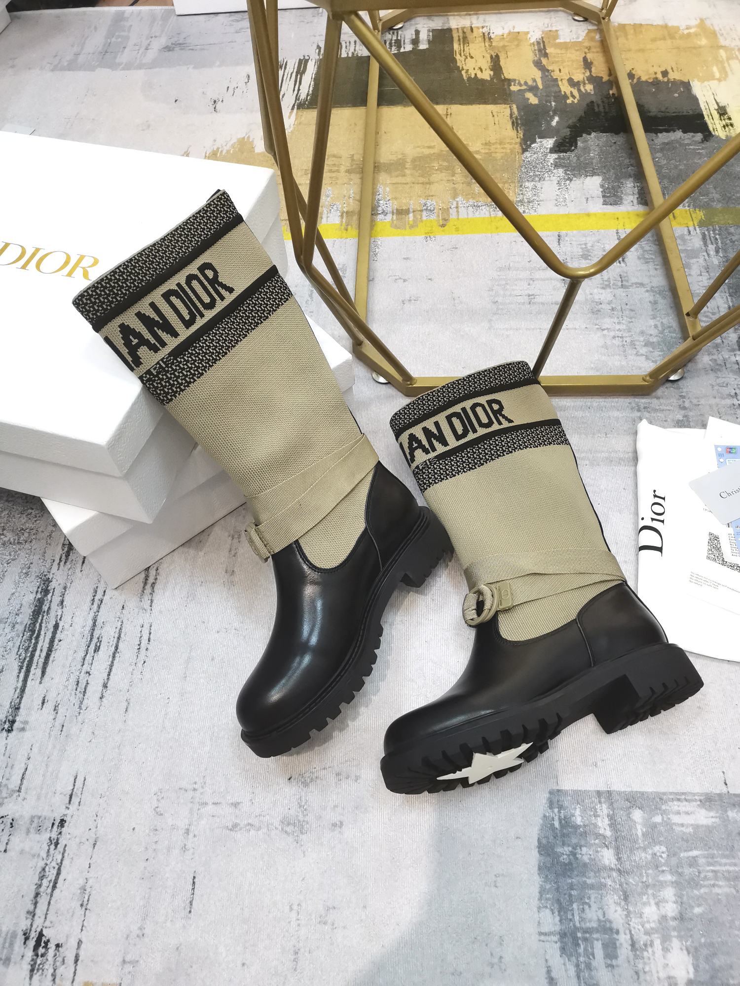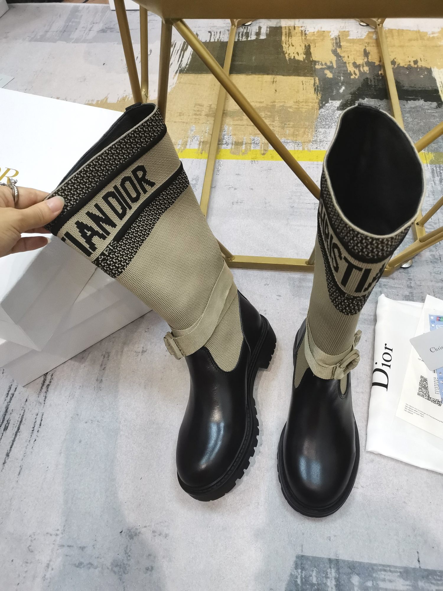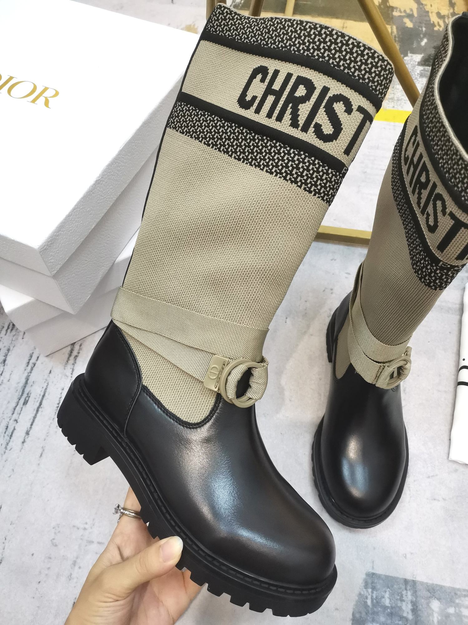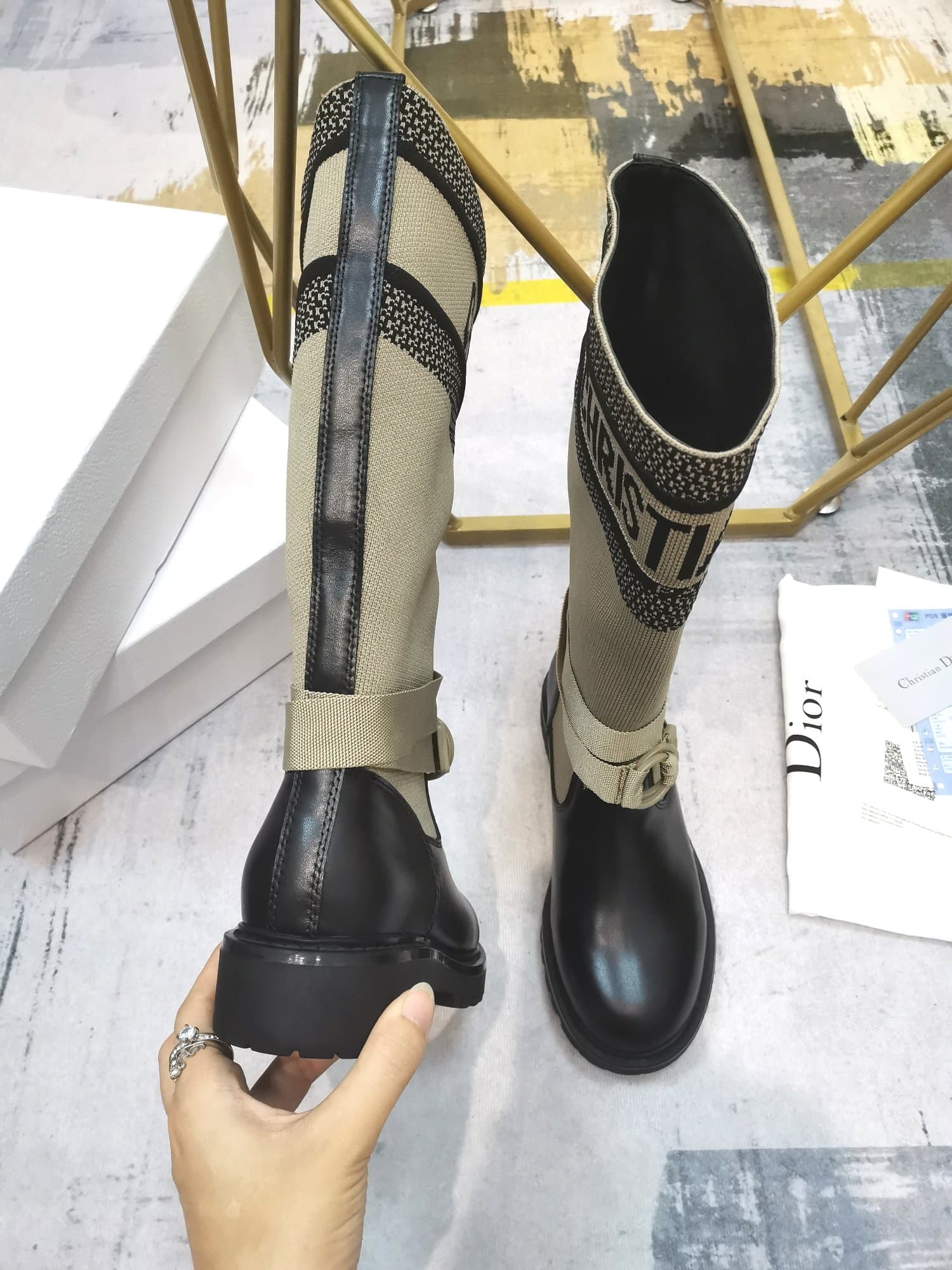 - CHRISTIAN DIOR signature on boot shaft