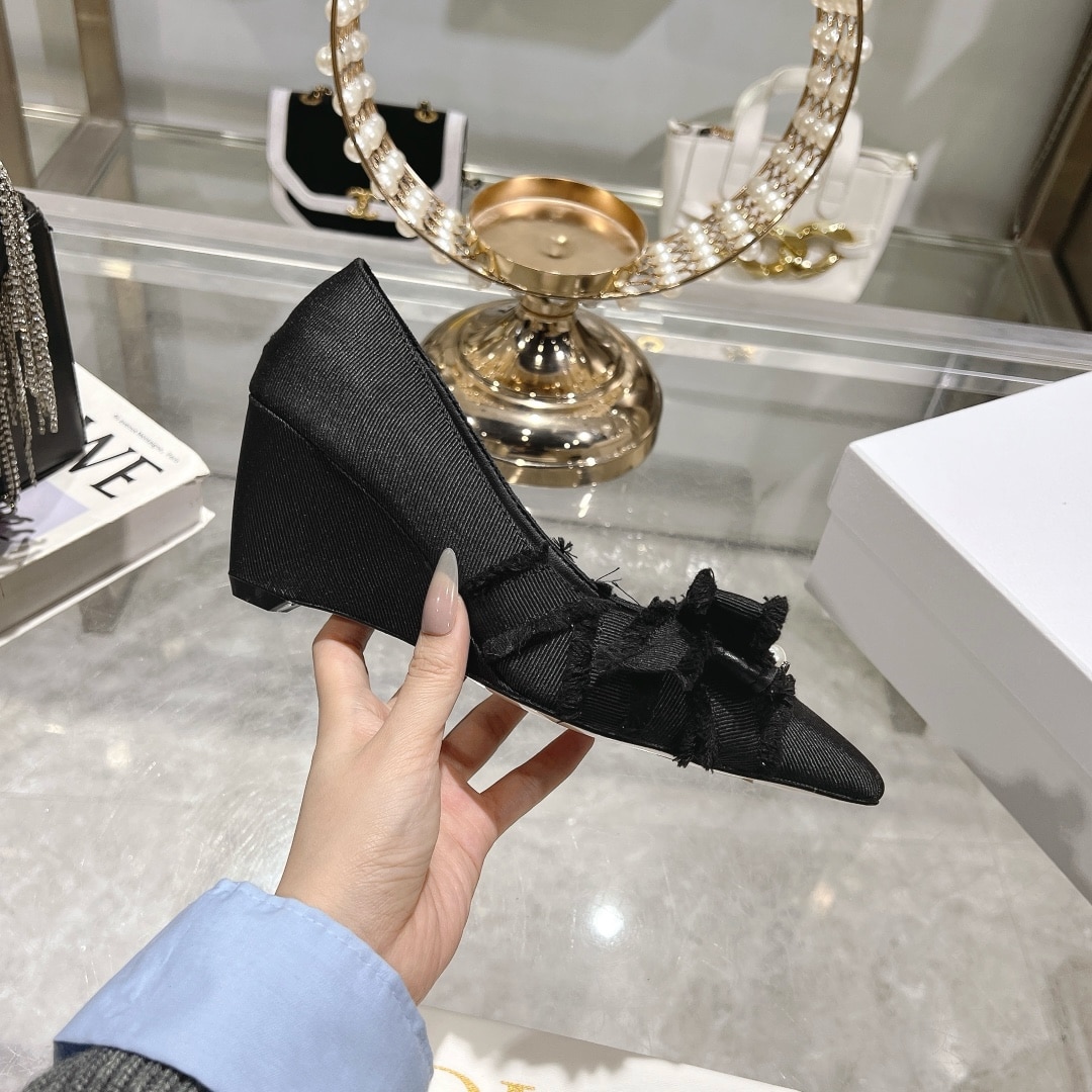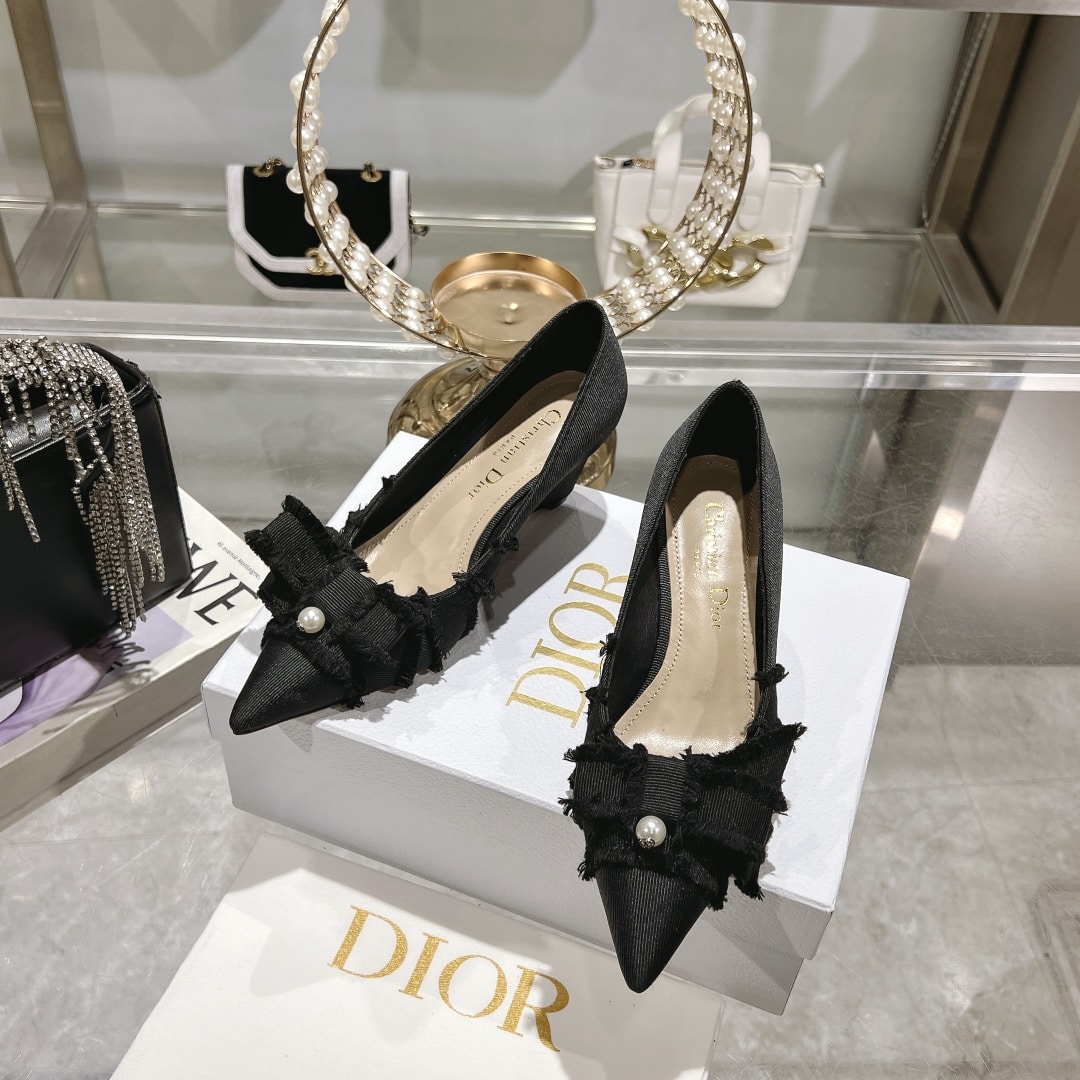 DIOR ADIORABLE PUMPS FRINGED GROSGRAIN IN BLACK