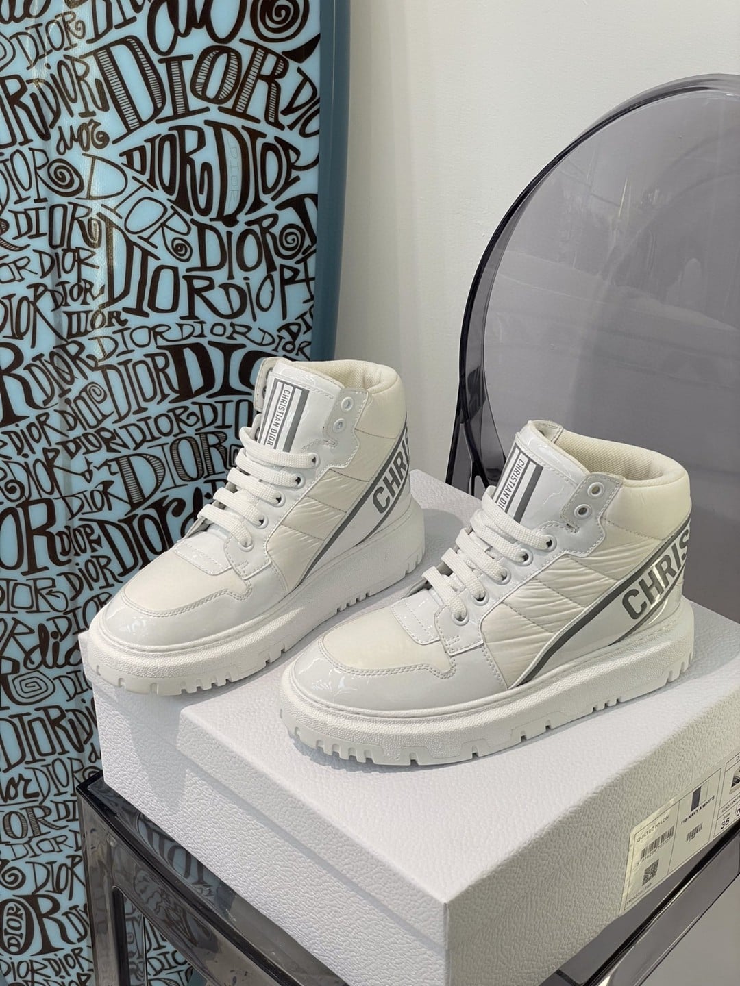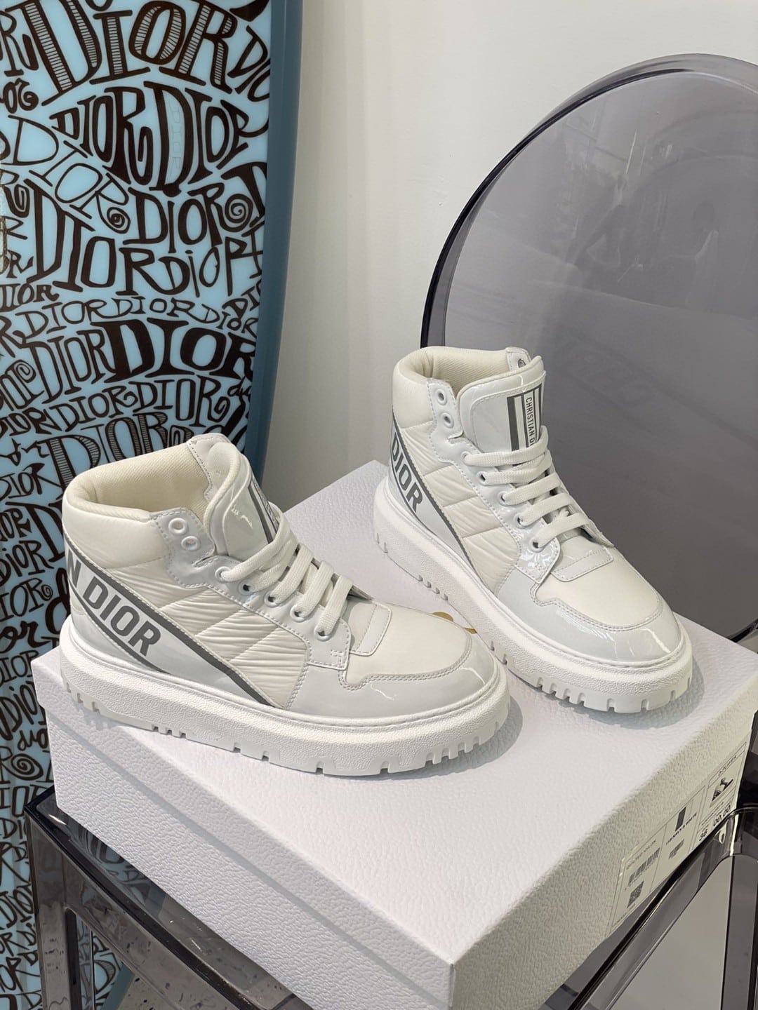 DIOR D-PLAYER HIGH-TOP SNEAKERS WHITE