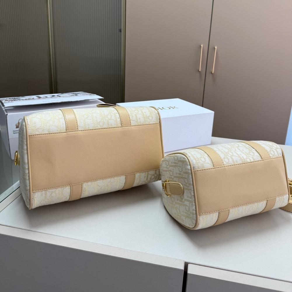 - Zip closure with padlock engraved with Christian Dior Paris