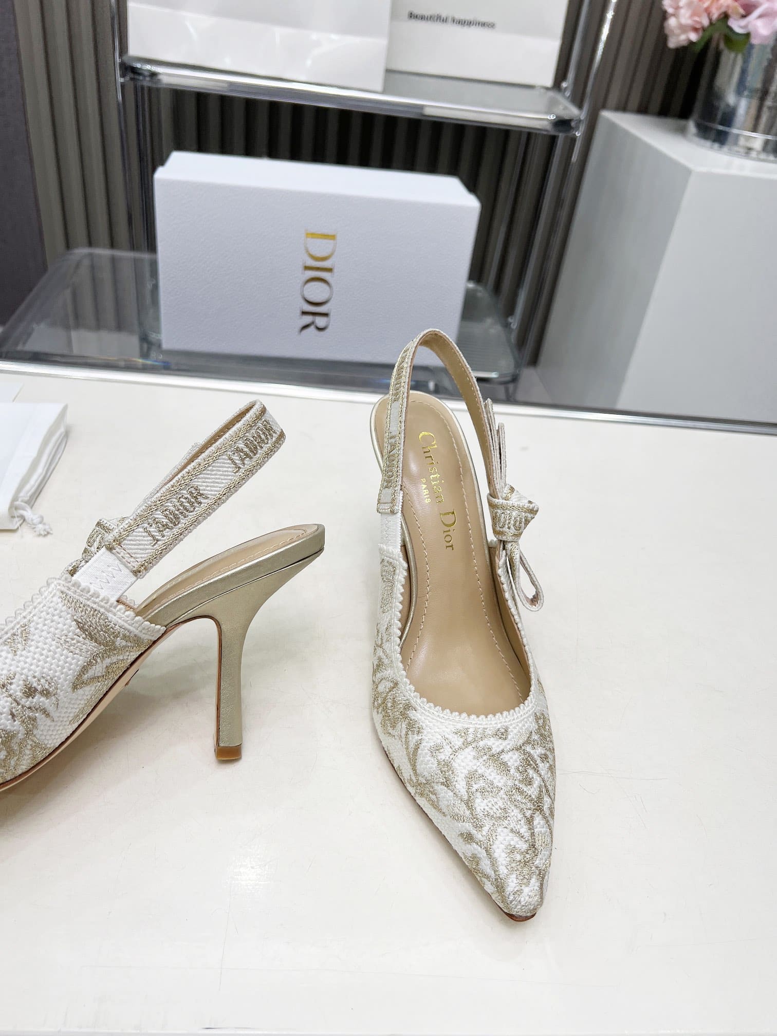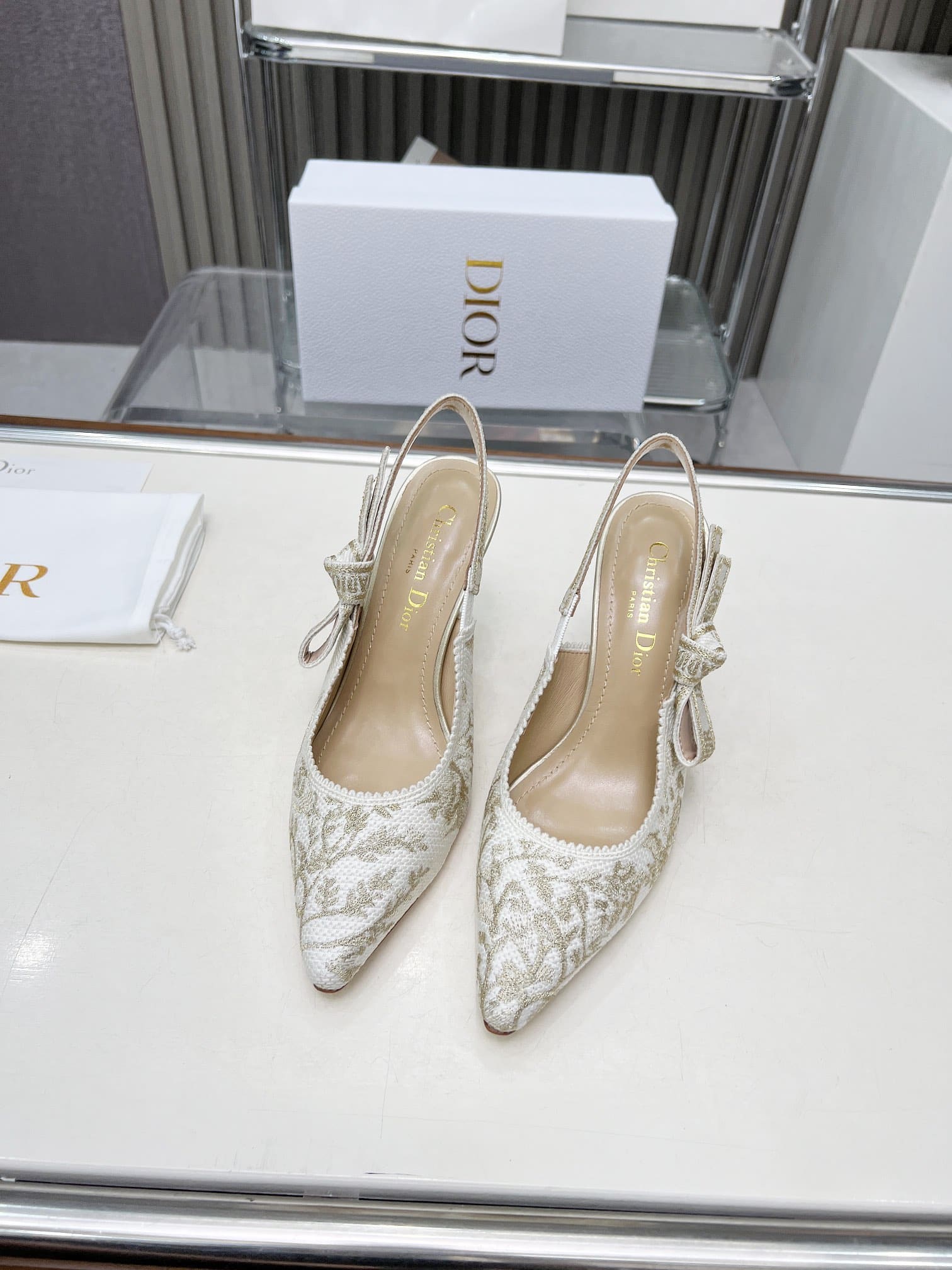 DIOR J'ADIOR SLINGBACK PUMP WHITE AND GOLD TONE KDP920LJE S09W