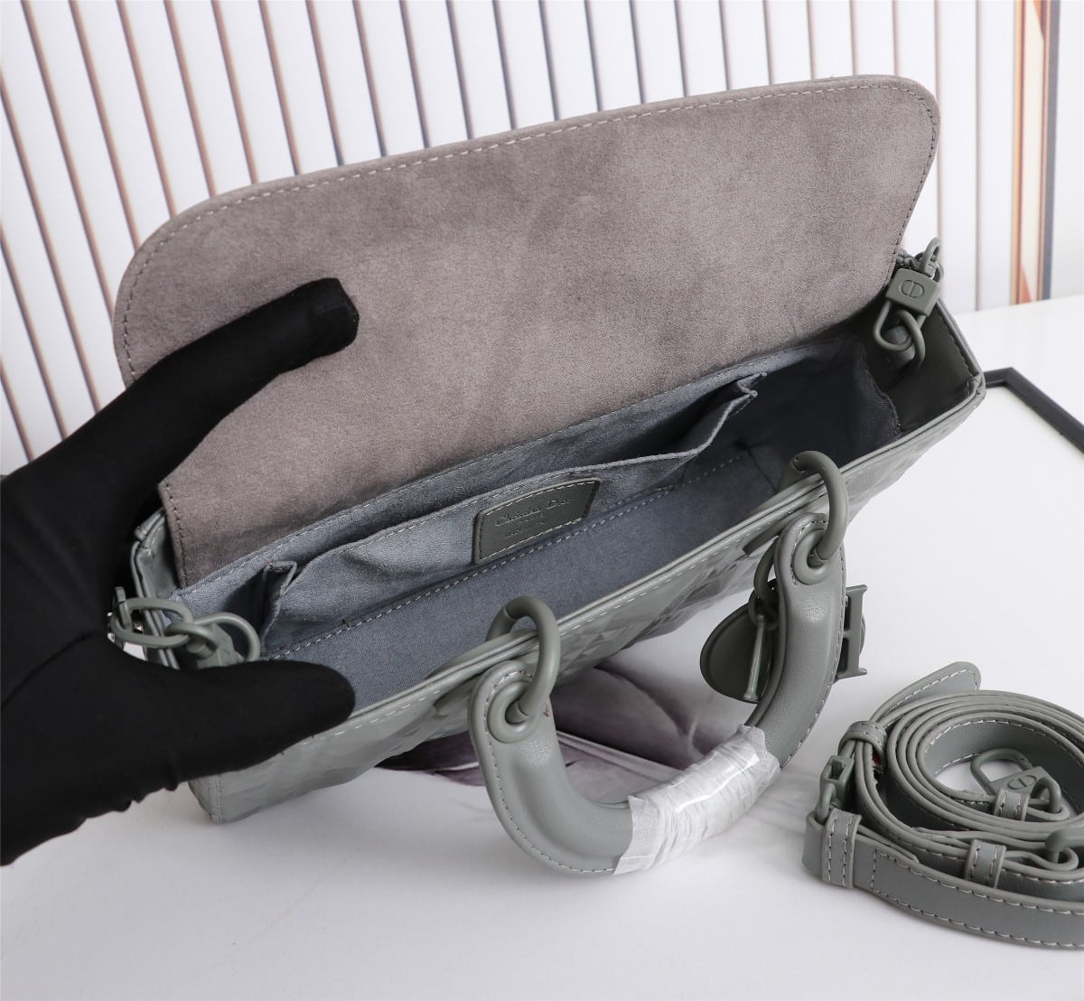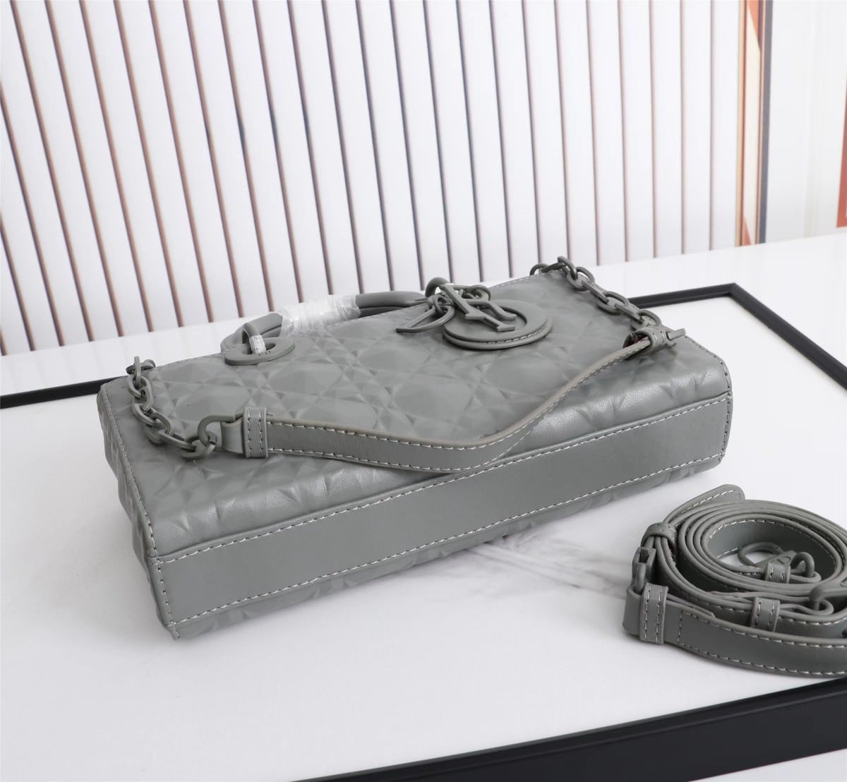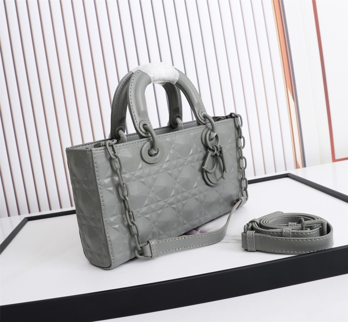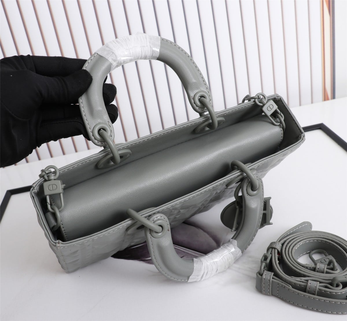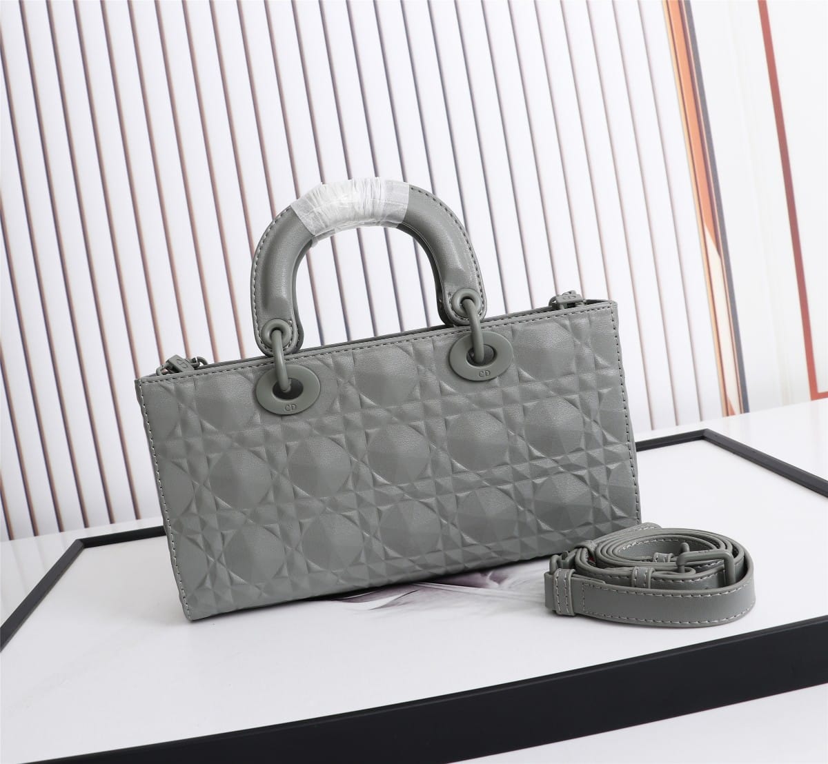 DIOR LADY D-JOY BAG CANNAGE CALFSKIN WITH DIAMOND MOTIF GREY / 26CM M0540INEA_M41G
