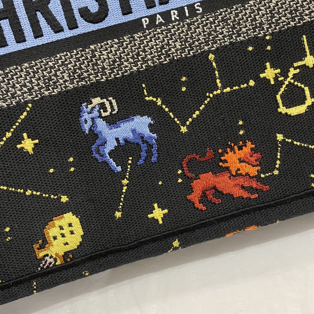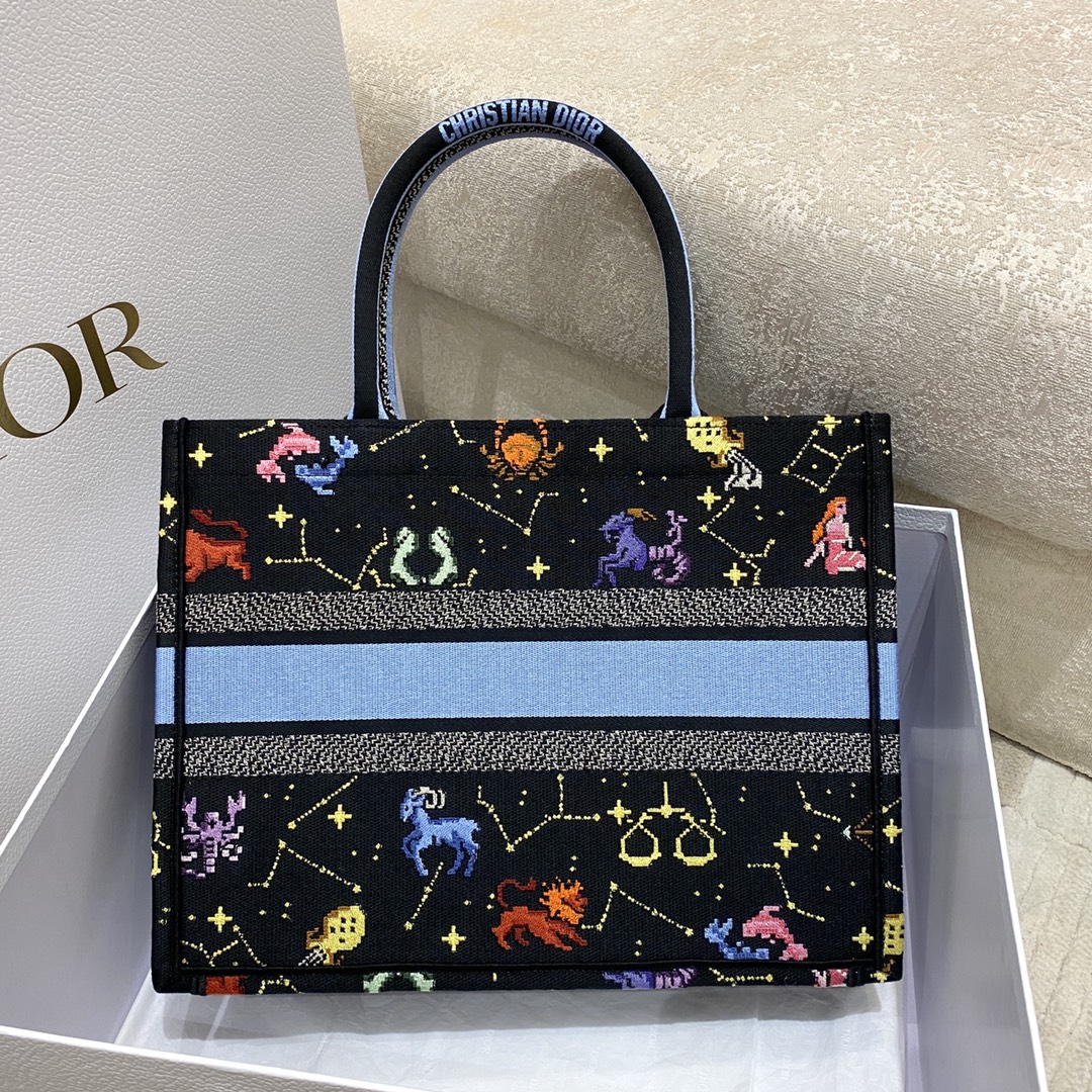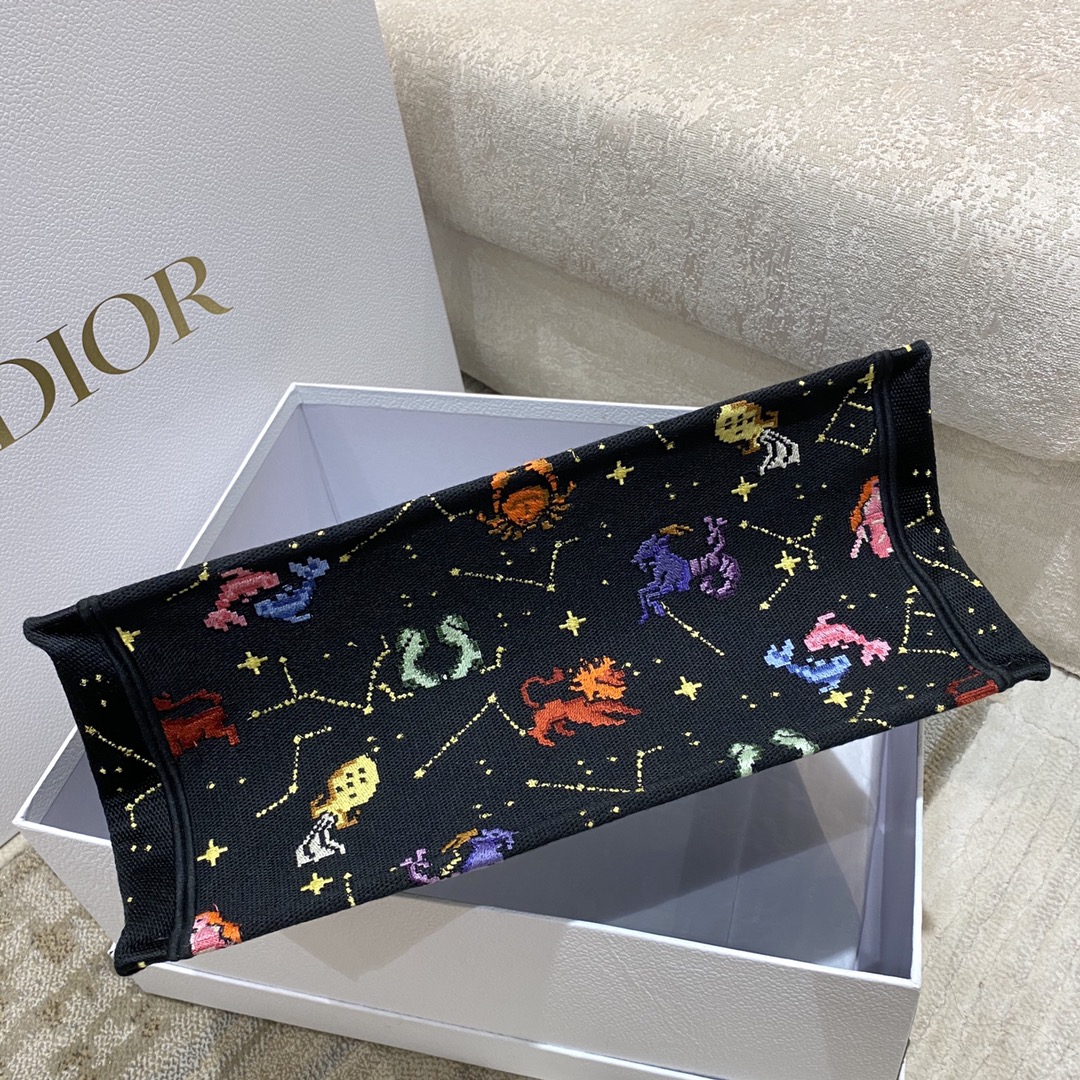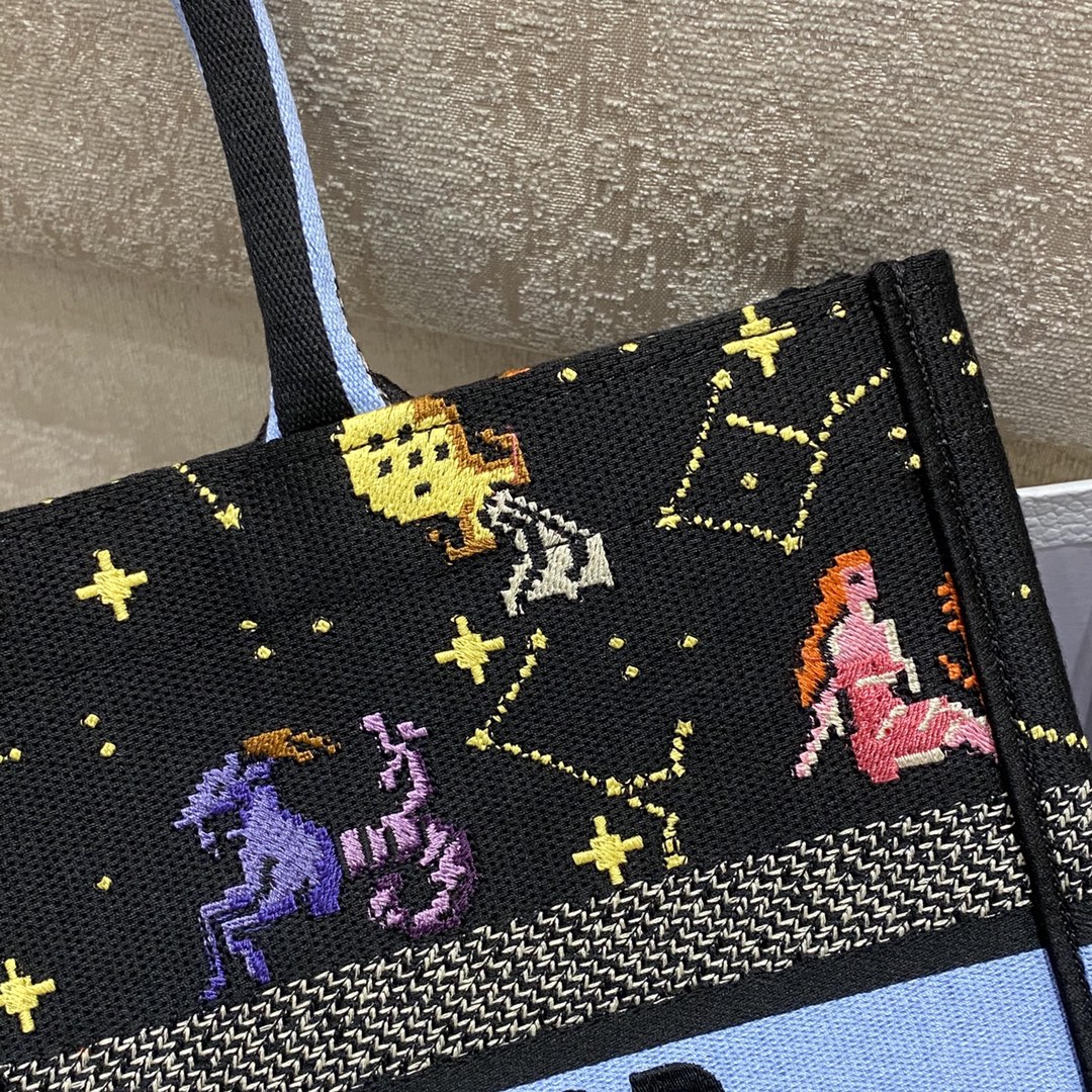 DIOR MEDIUM BOOK TOTE BLACK MULTICOLOR PIXEL ZODIAC EMBROIDERY 36CM M1296ZRTY_M911