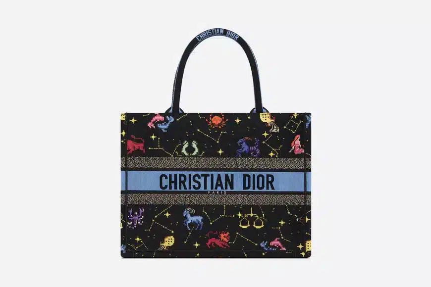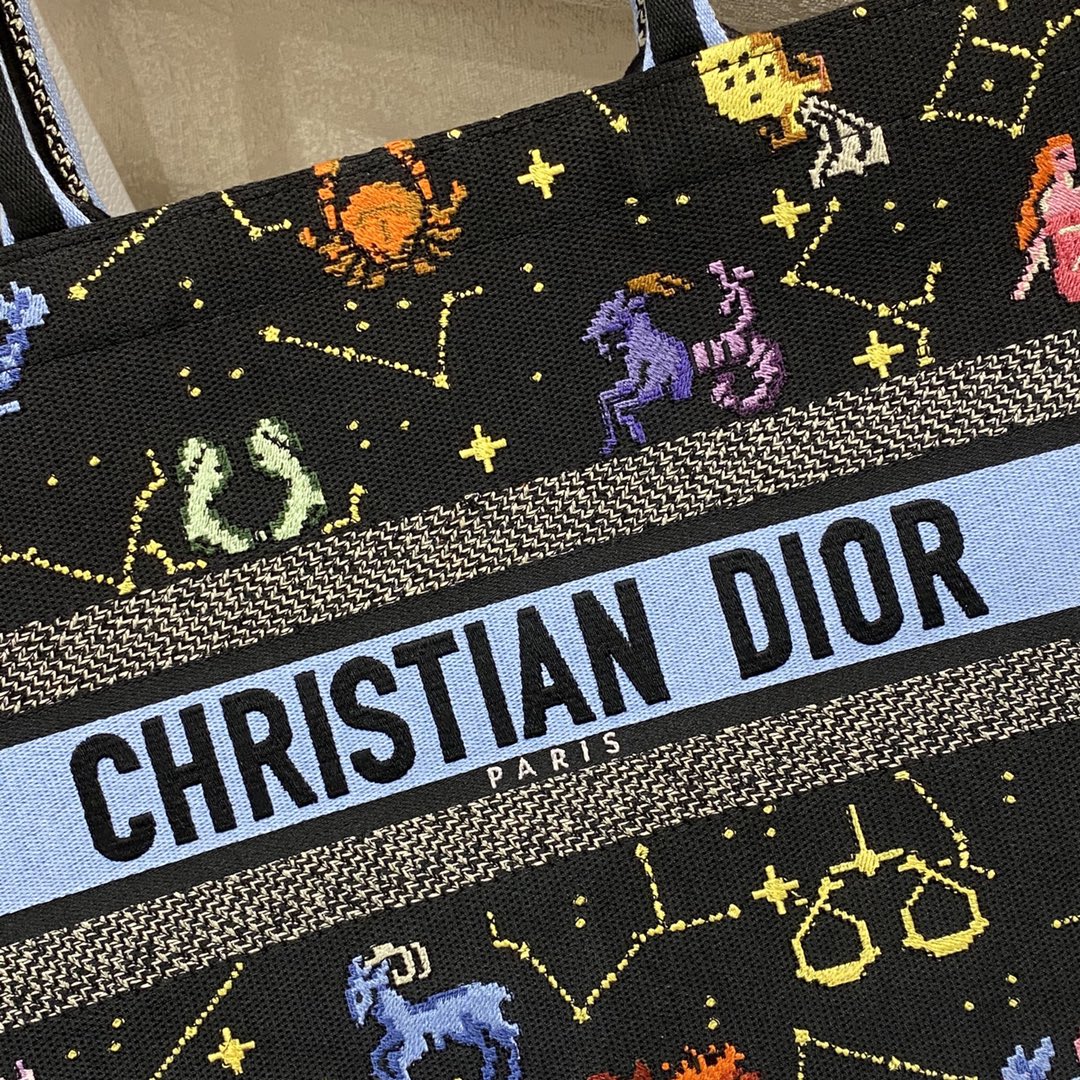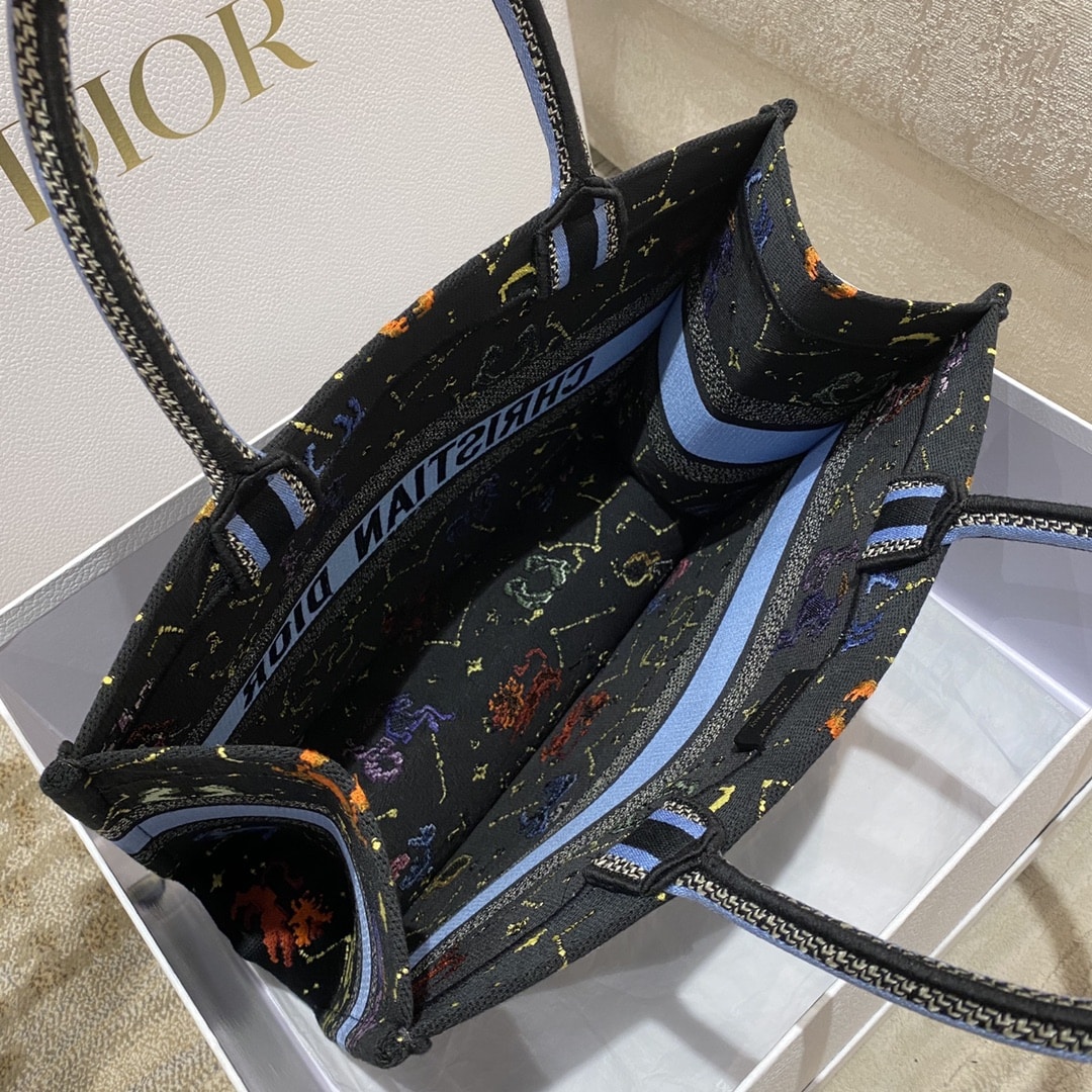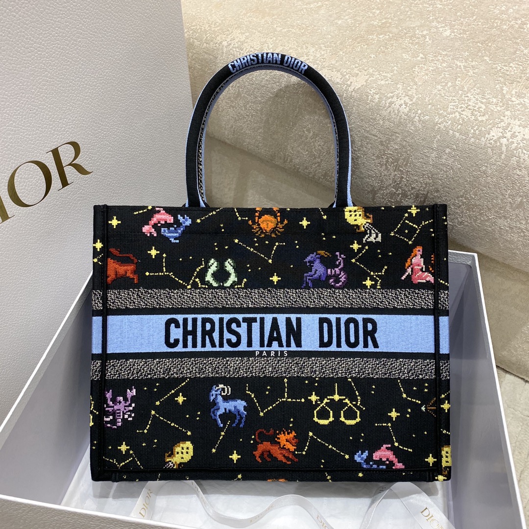 DIOR MEDIUM BOOK TOTE BLACK MULTICOLOR PIXEL ZODIAC EMBROIDERY 36CM M1296ZRTY_M911