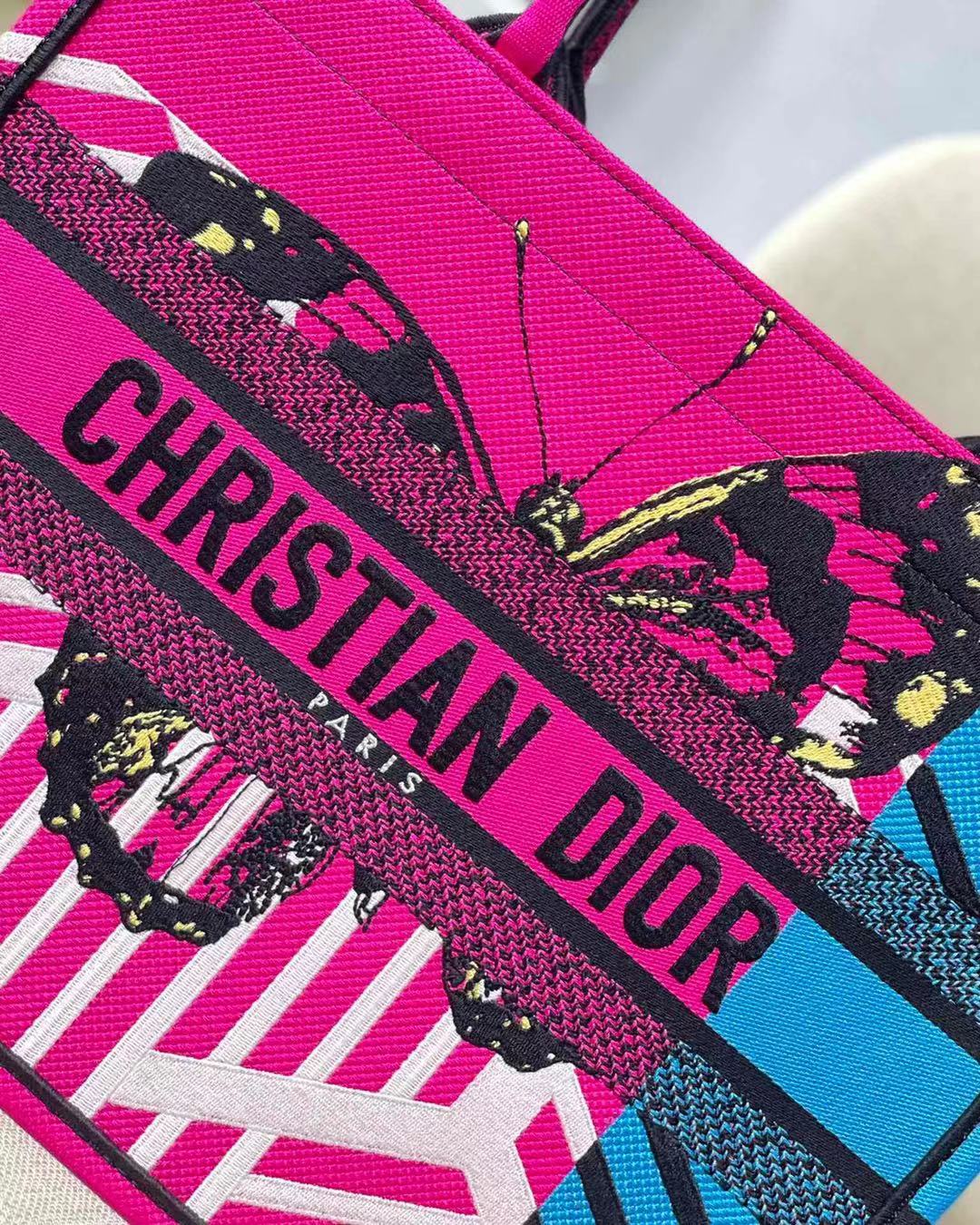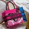 Dior Medium Book Tote Bright Blue and Bright Pink D-Jungle Pop Embroidery / 36cm M1296ZRON_M885