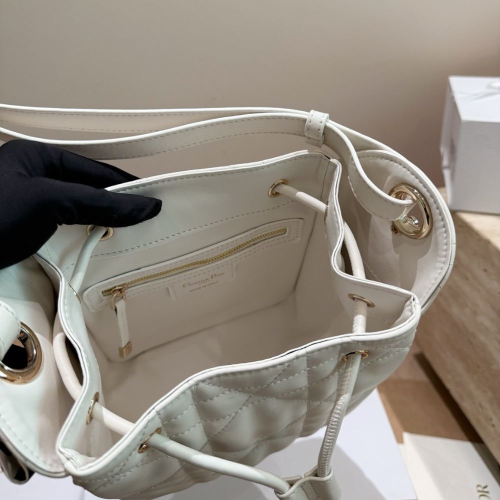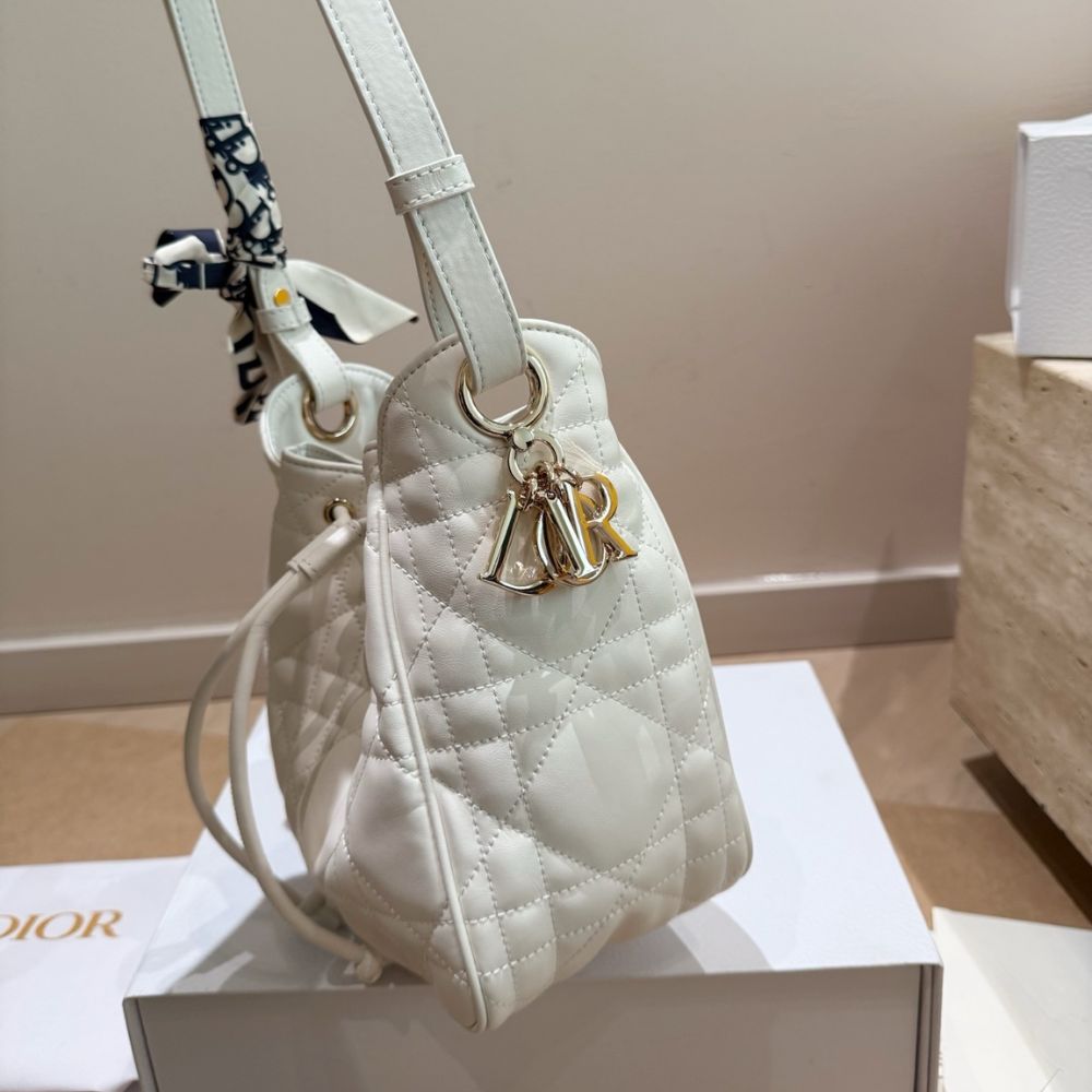 Dior Medium D Motion Bag / White / 9 x 9.5 x 5 inches / Gold-toned hardware / The size is suitable for a Voyageur wallet, a phone, a card holder, sunglasses and lipstick