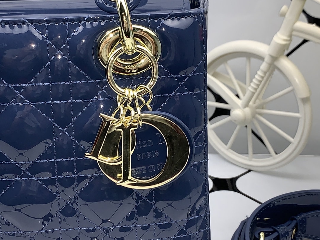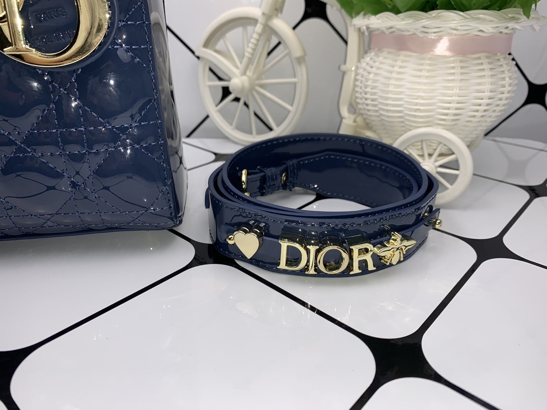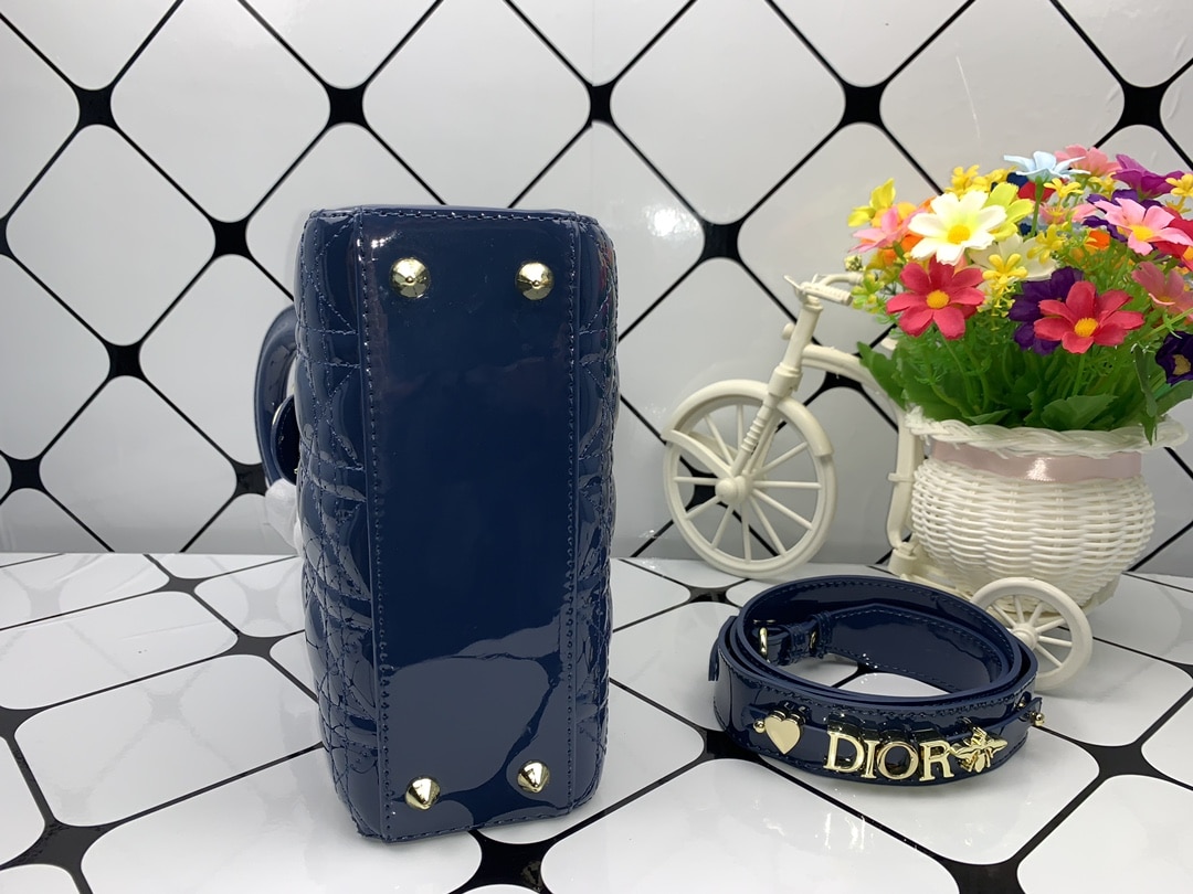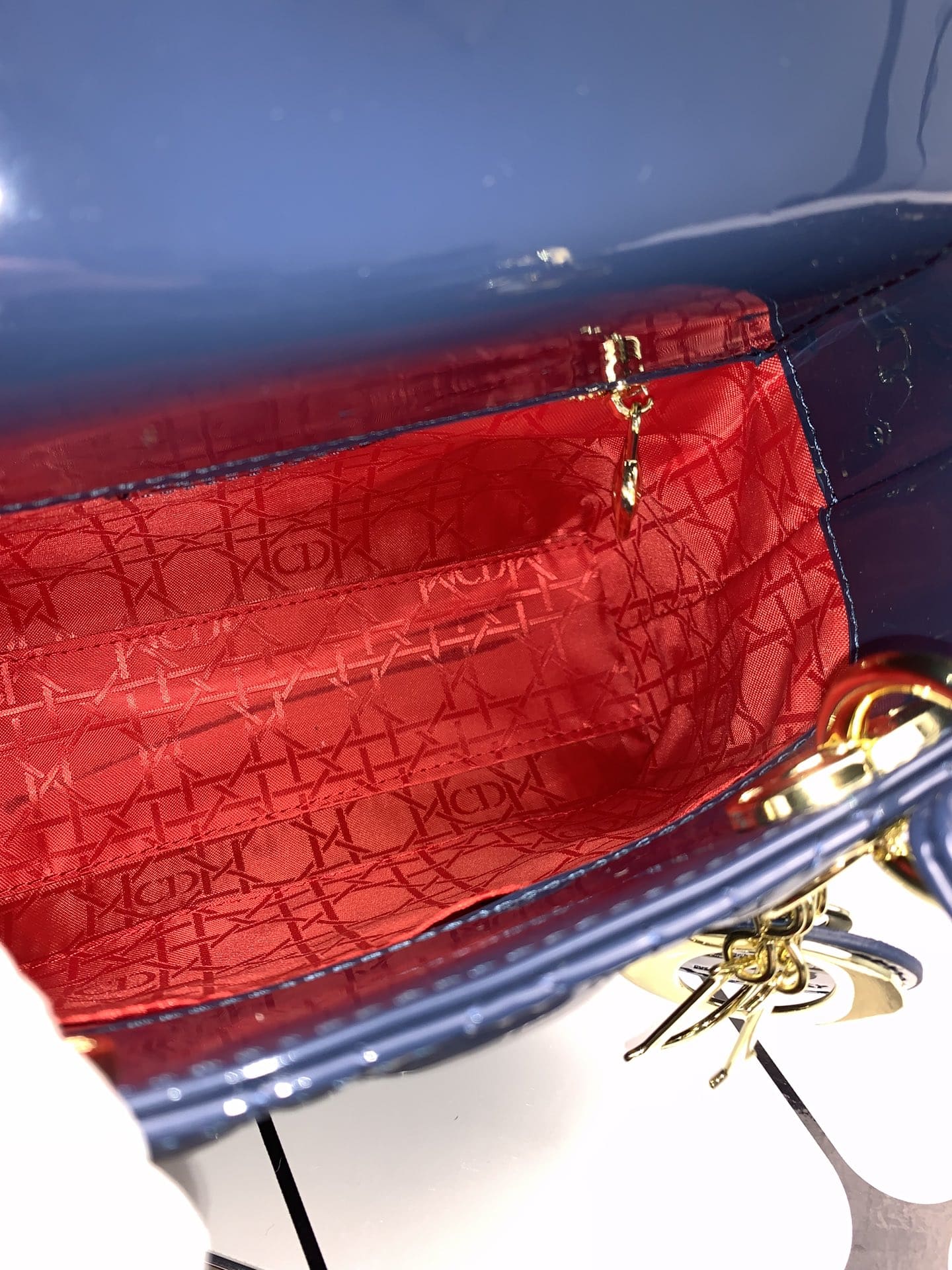 DIOR MEDIUM LADY BLUSH CANNAGE BAG DARK BLUE 20CM